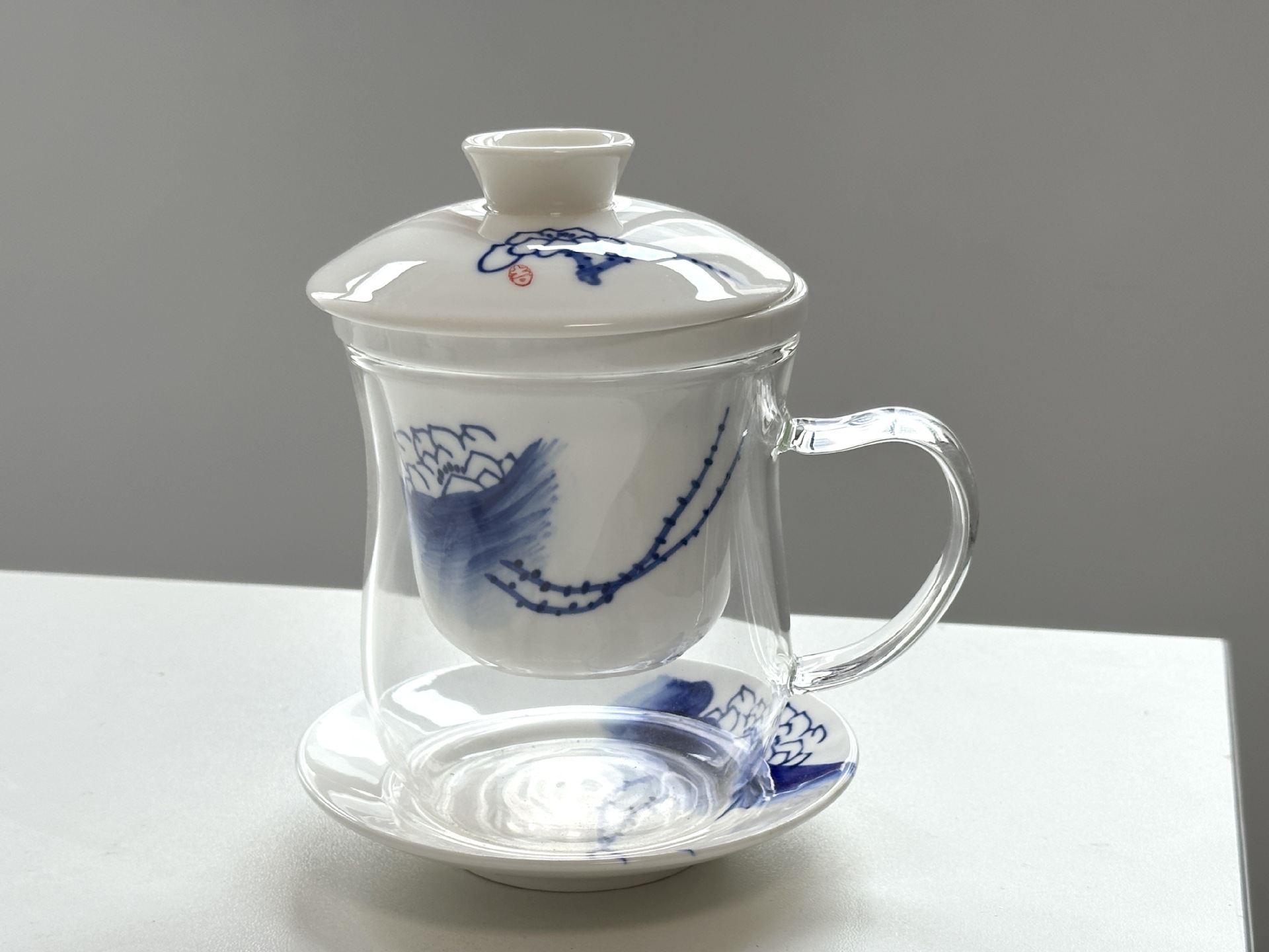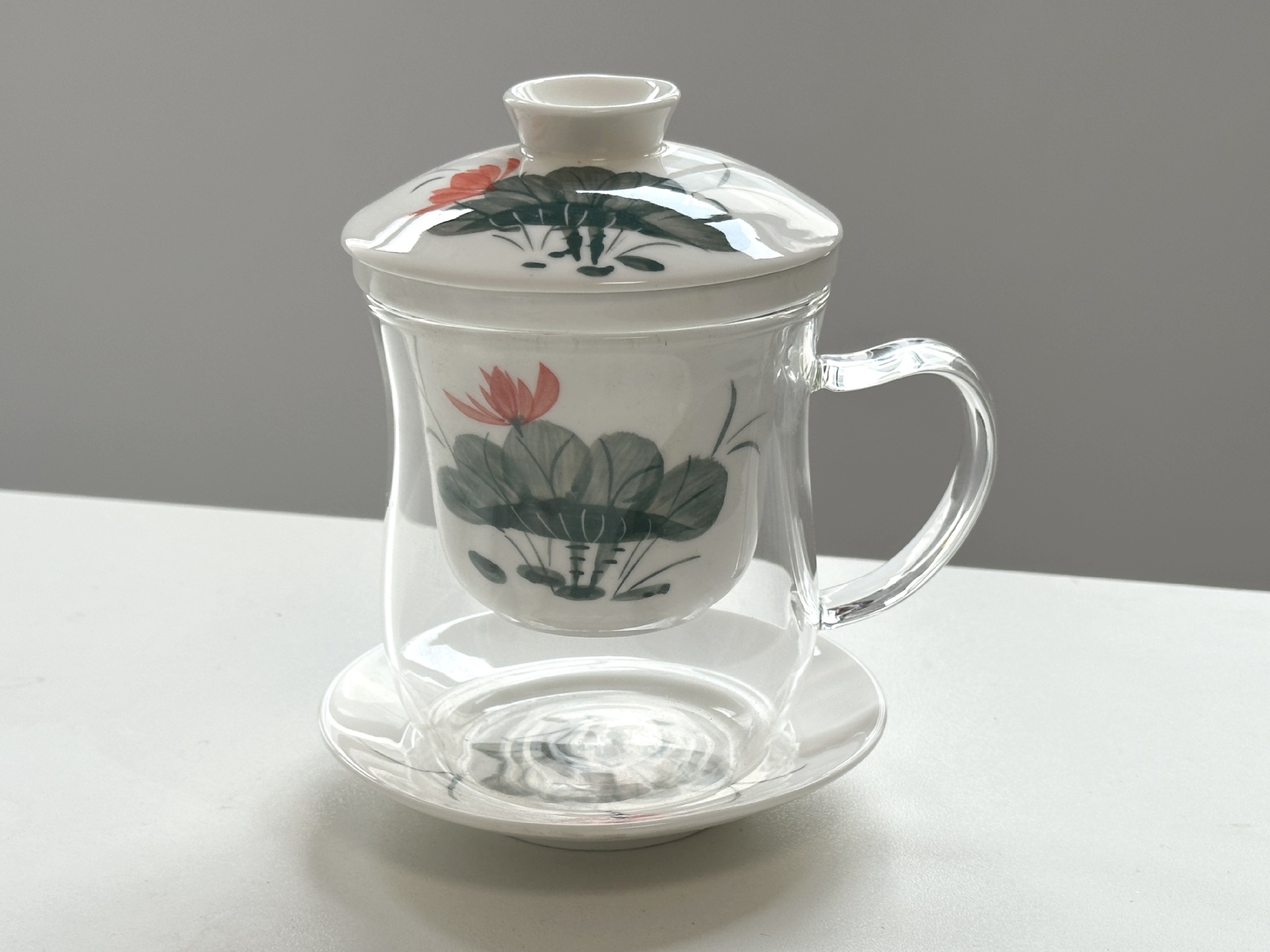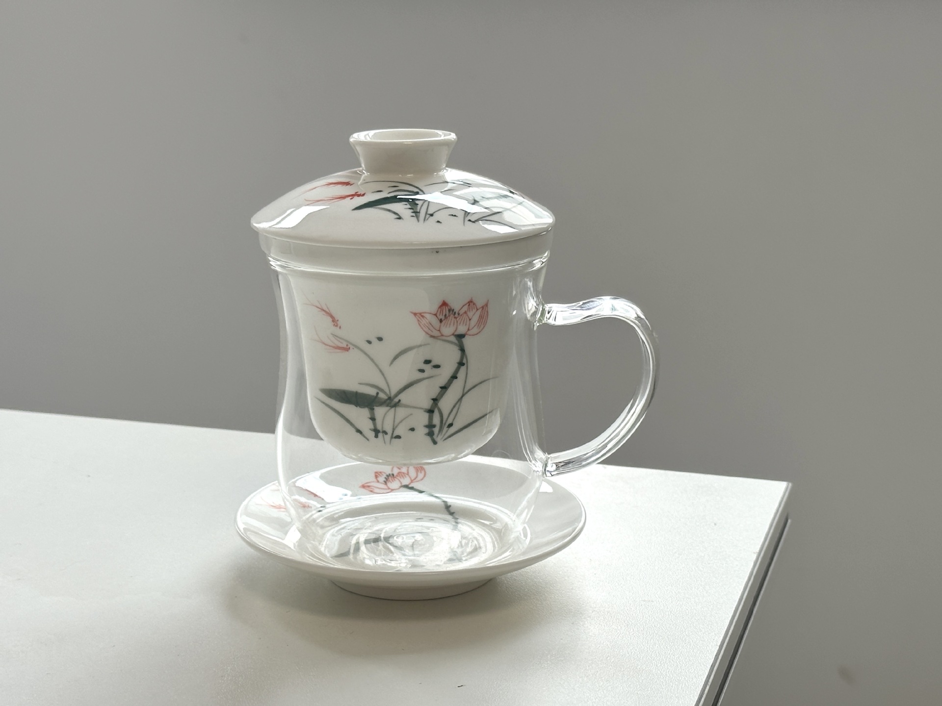 初泡茶杯茶杯分離事務室水ガラス茶道杯大容量茶漏ろ過コップ