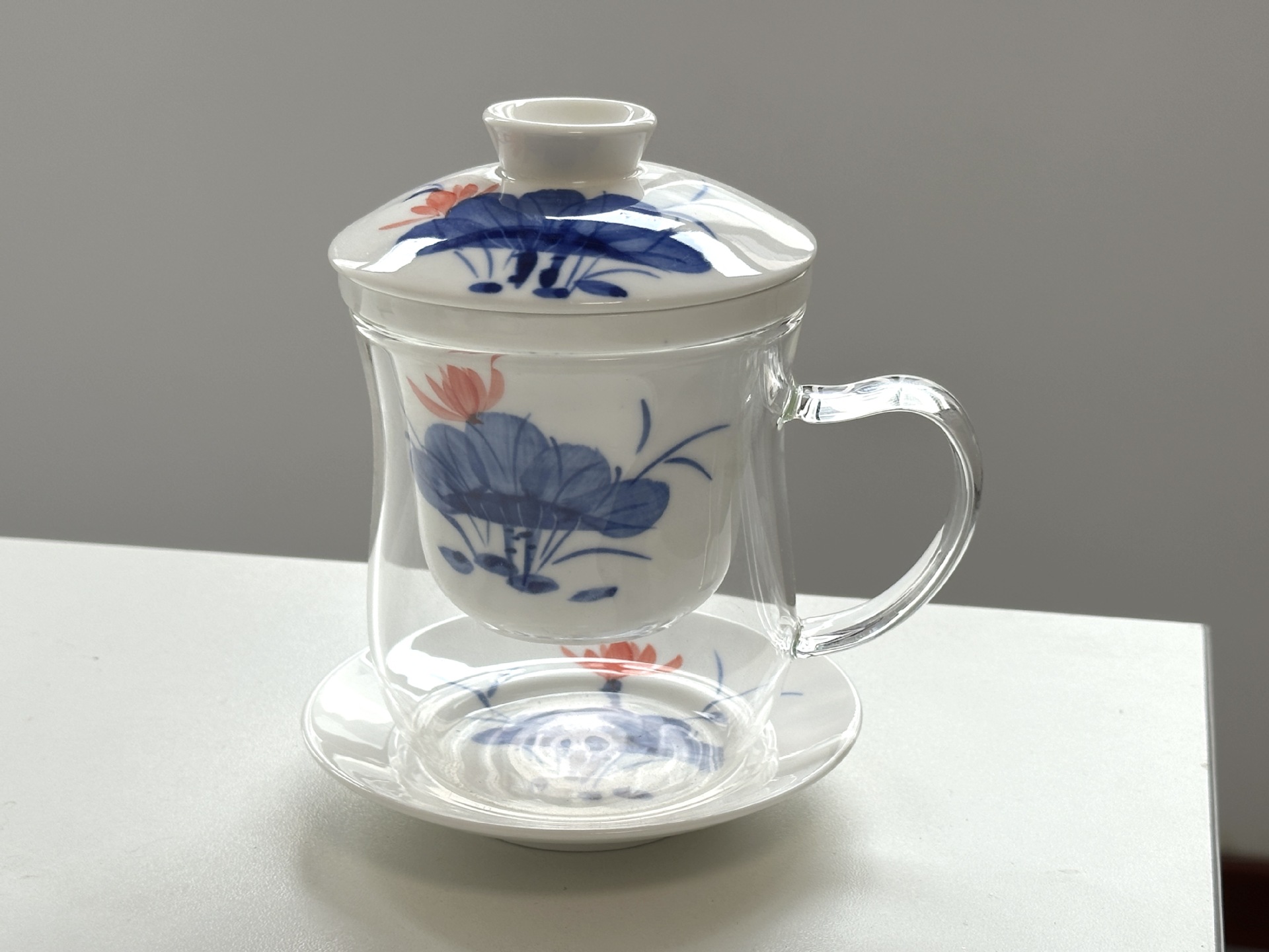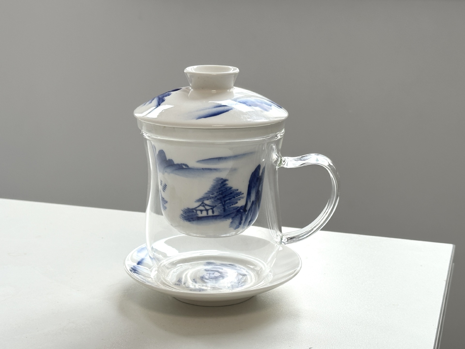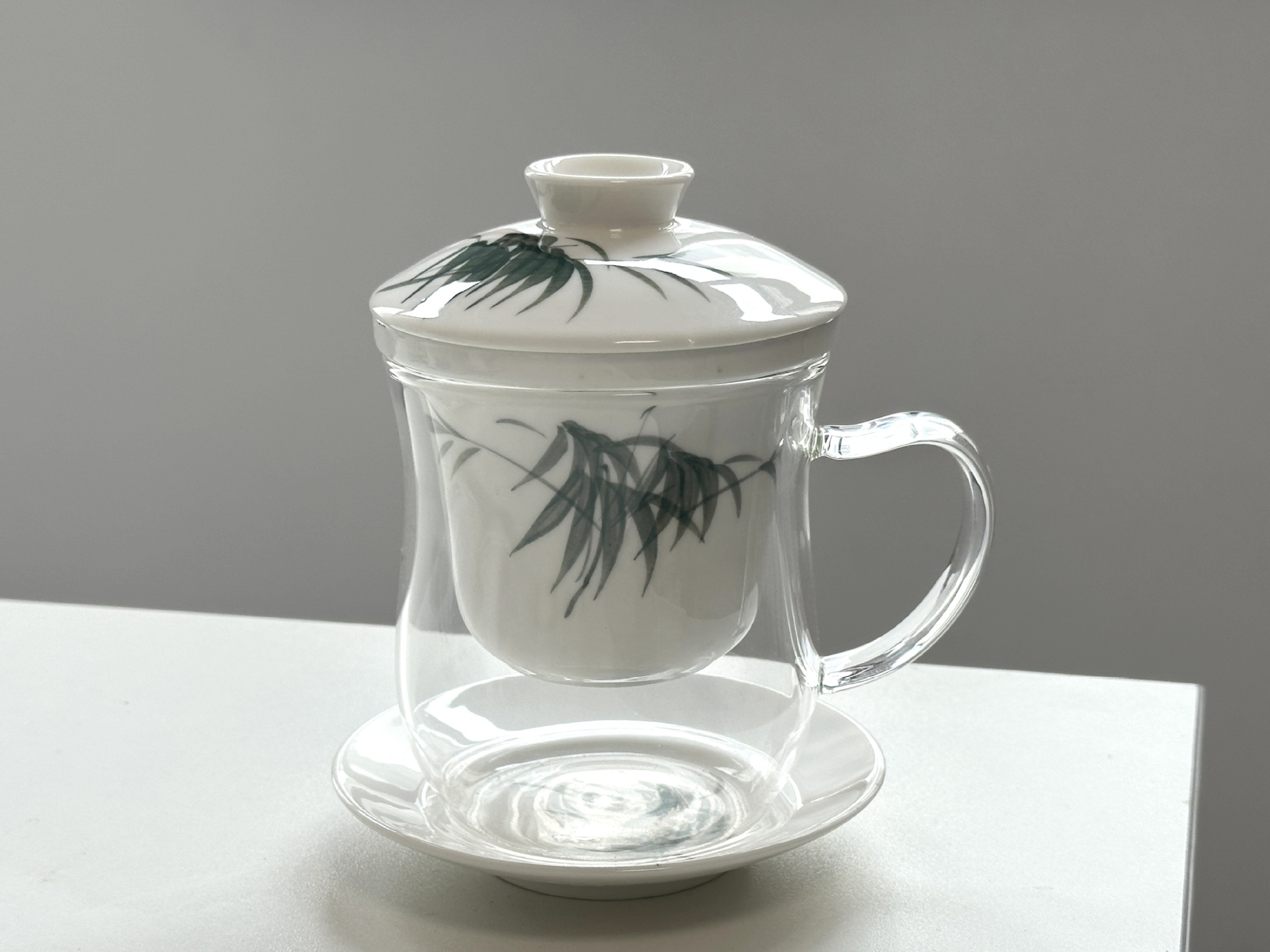 ティーカップ釉下色耐熱ガラスカップ増粘4ピース透明カップセラミックティーカップ茶スープ分離水カップ