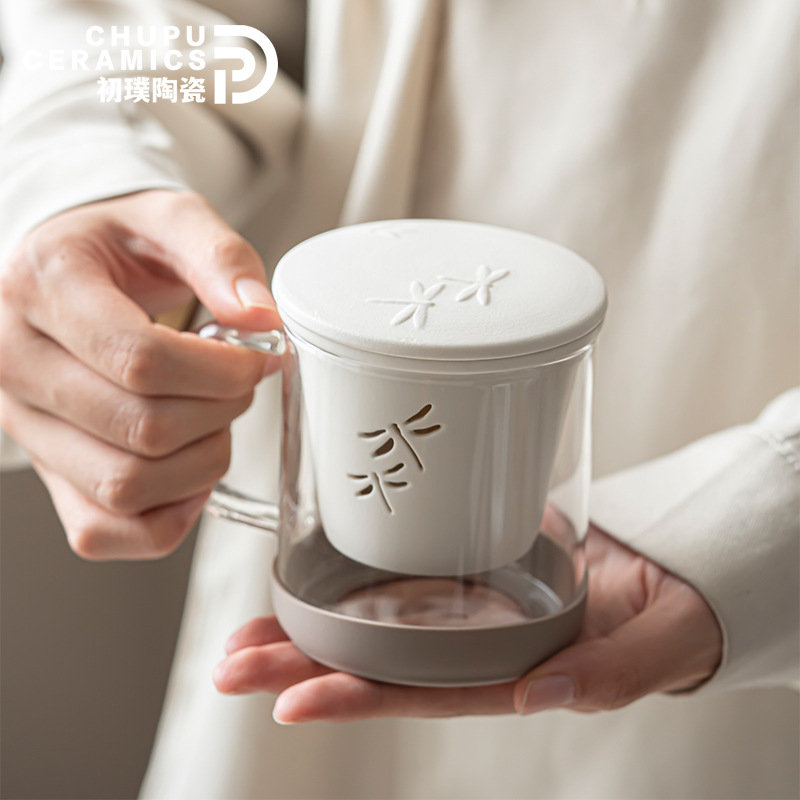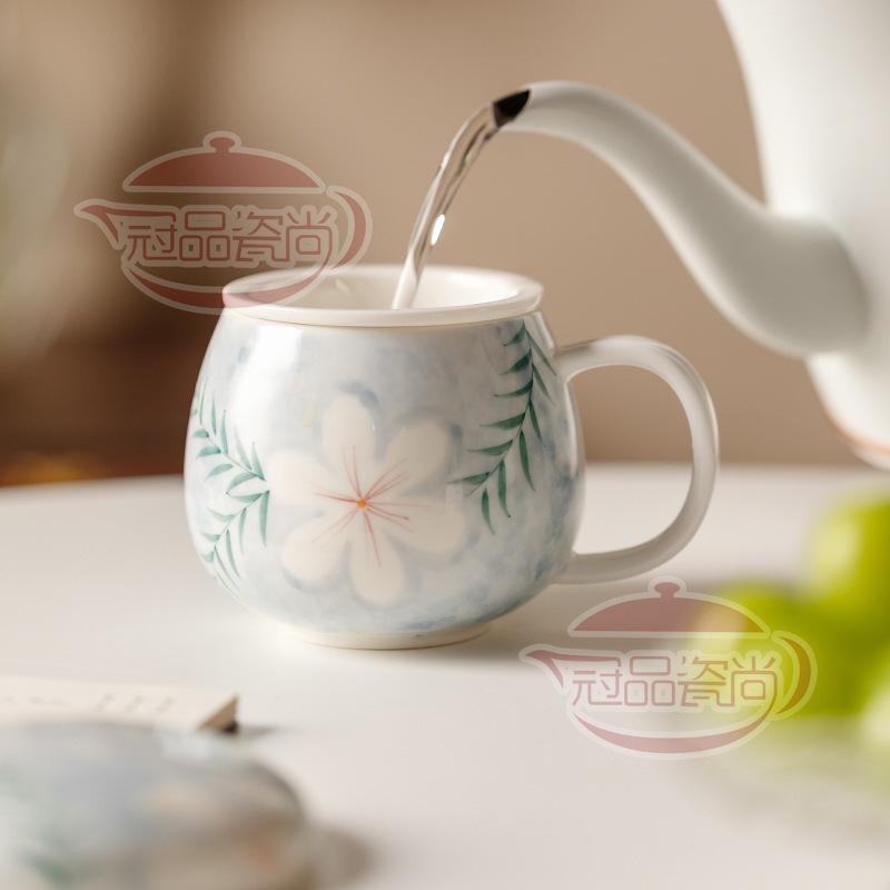 陶瓷手绘水杯泡茶杯带盖办公室陶瓷马克杯茶水分离喝水杯过滤