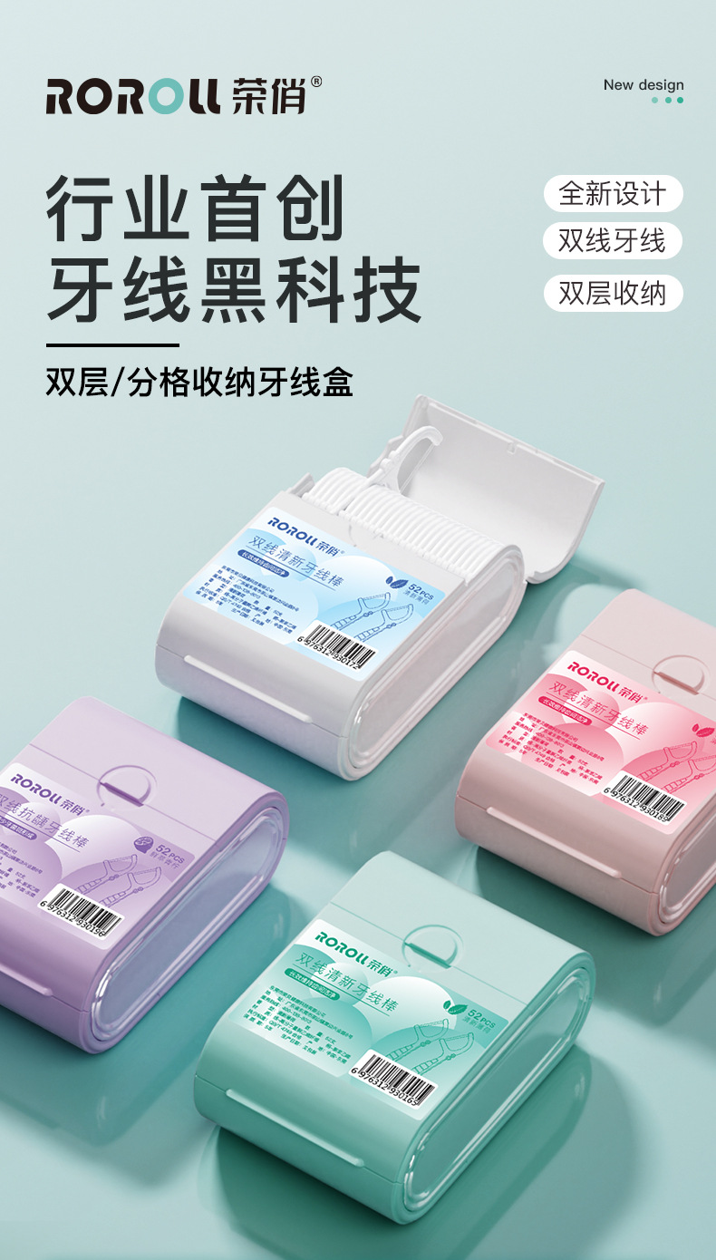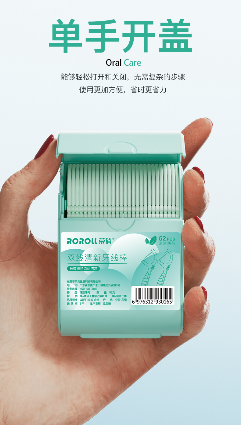 Rongqiao の新しいポータブルデンタルフロスダブルラインミントフレーバー使い捨てデンタルフロススティック箱入り卸売工場つまようじ家庭用