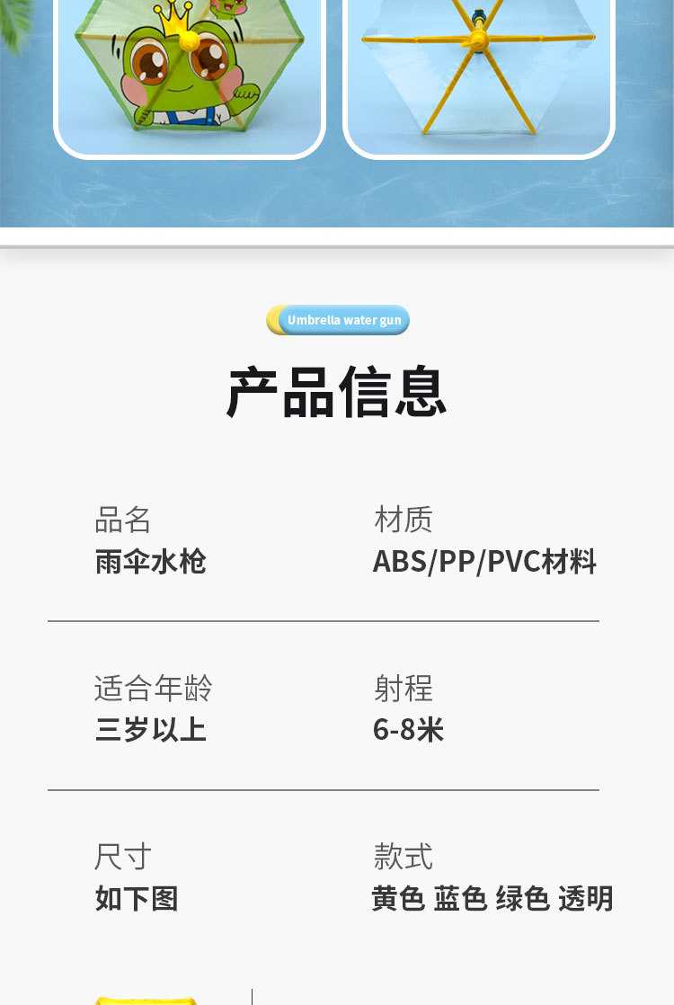 カラー 【小黄鴨】傘水鉄砲,【恐竜】傘水鉄砲,【カエルの王子様】傘水鉄砲,【純透明】傘水鉄砲