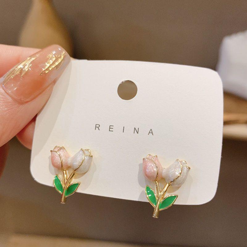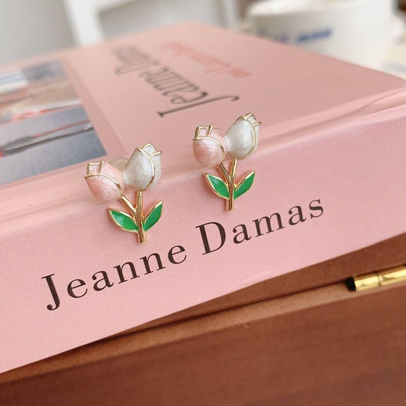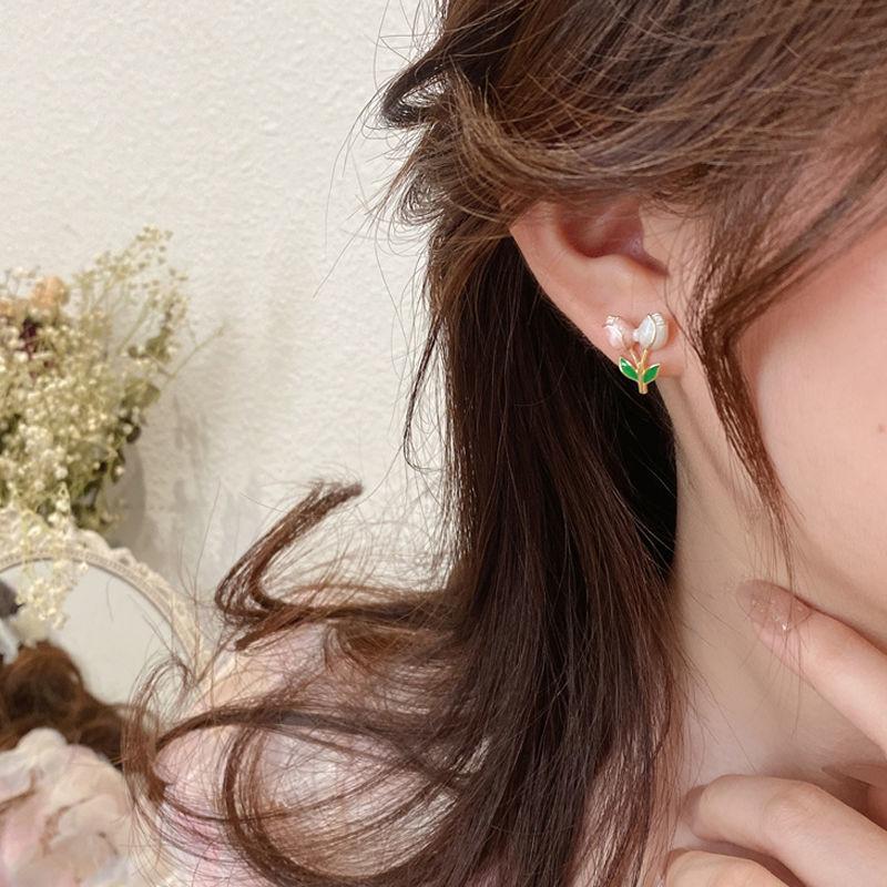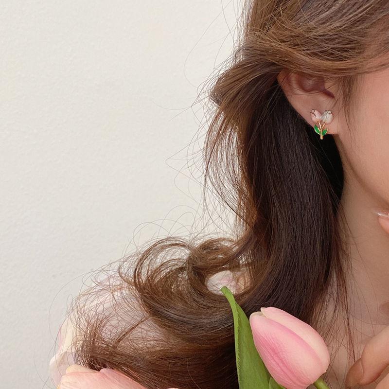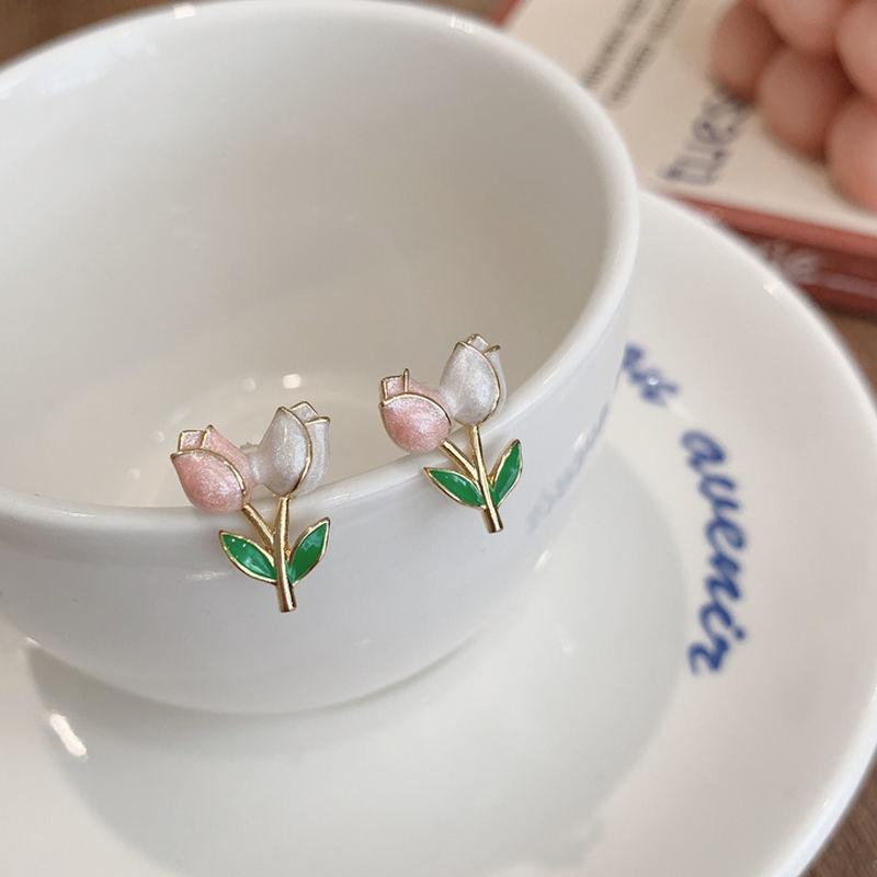 チューリップのイヤリングは甘くて、みんなのデザイン感があります。