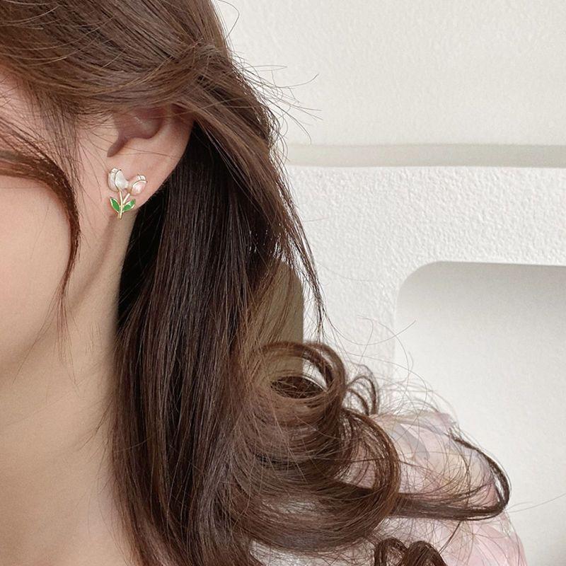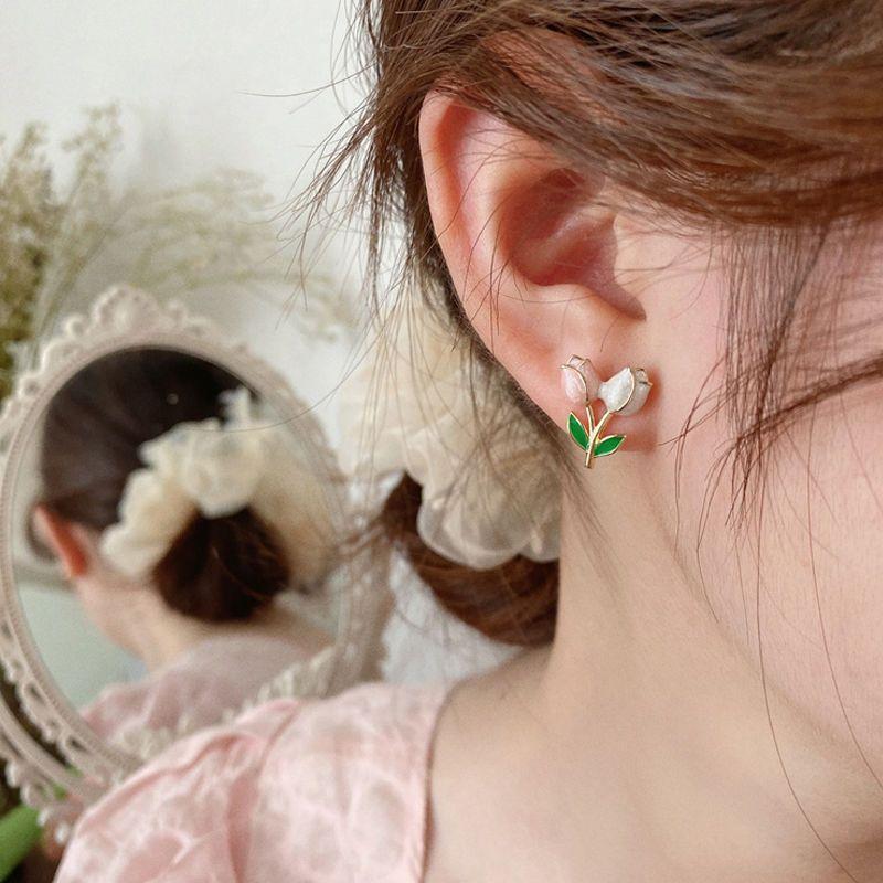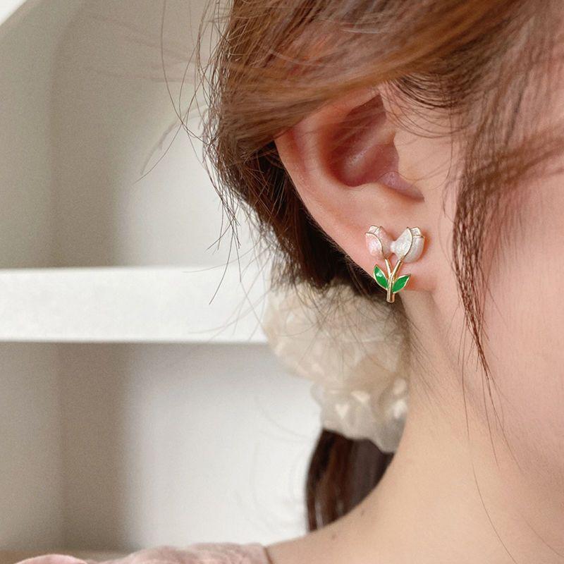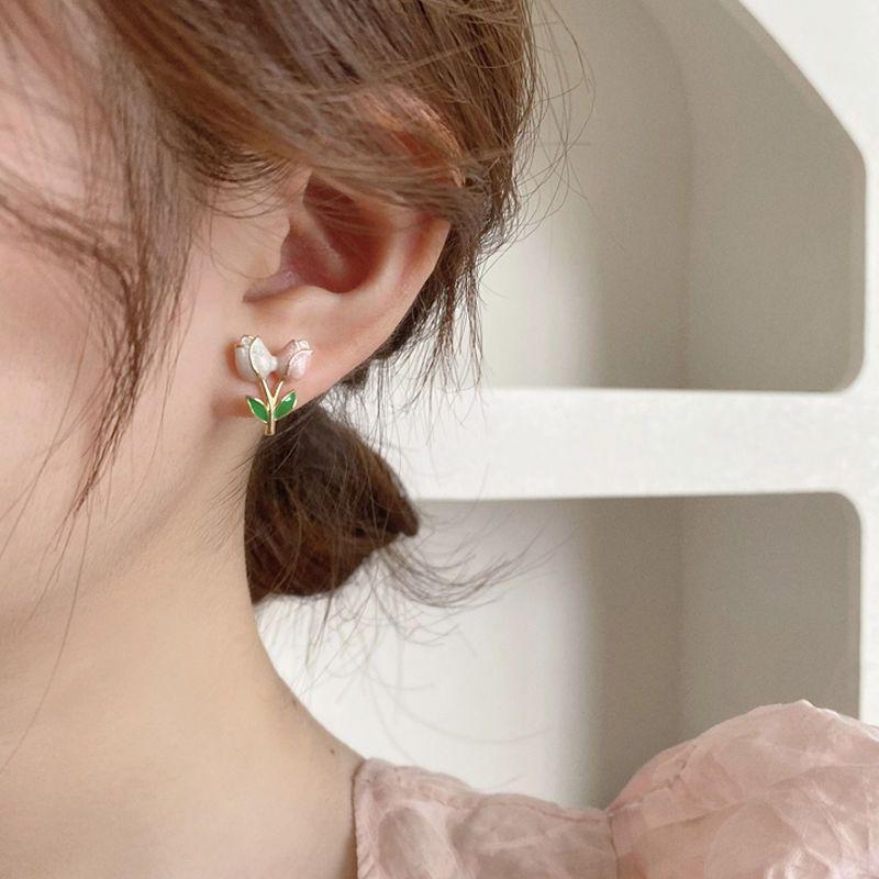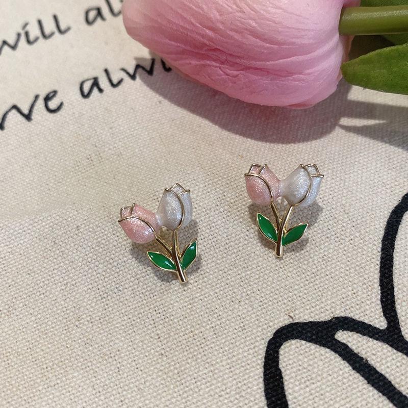 チューリップのイヤリングは甘くて、みんなのデザイン感があります。
