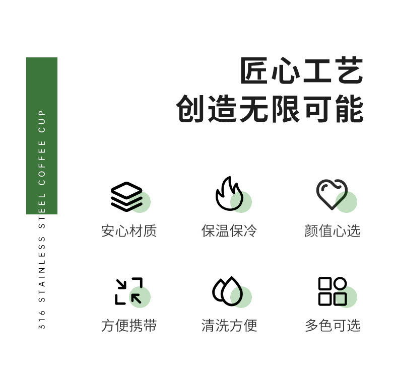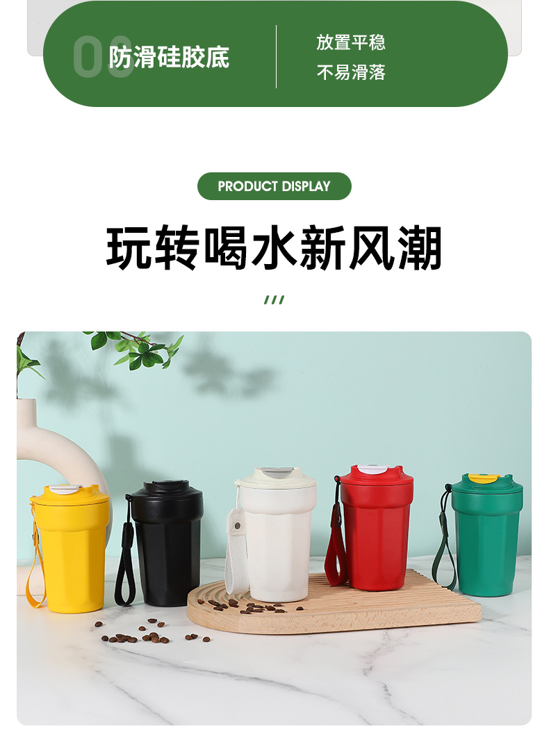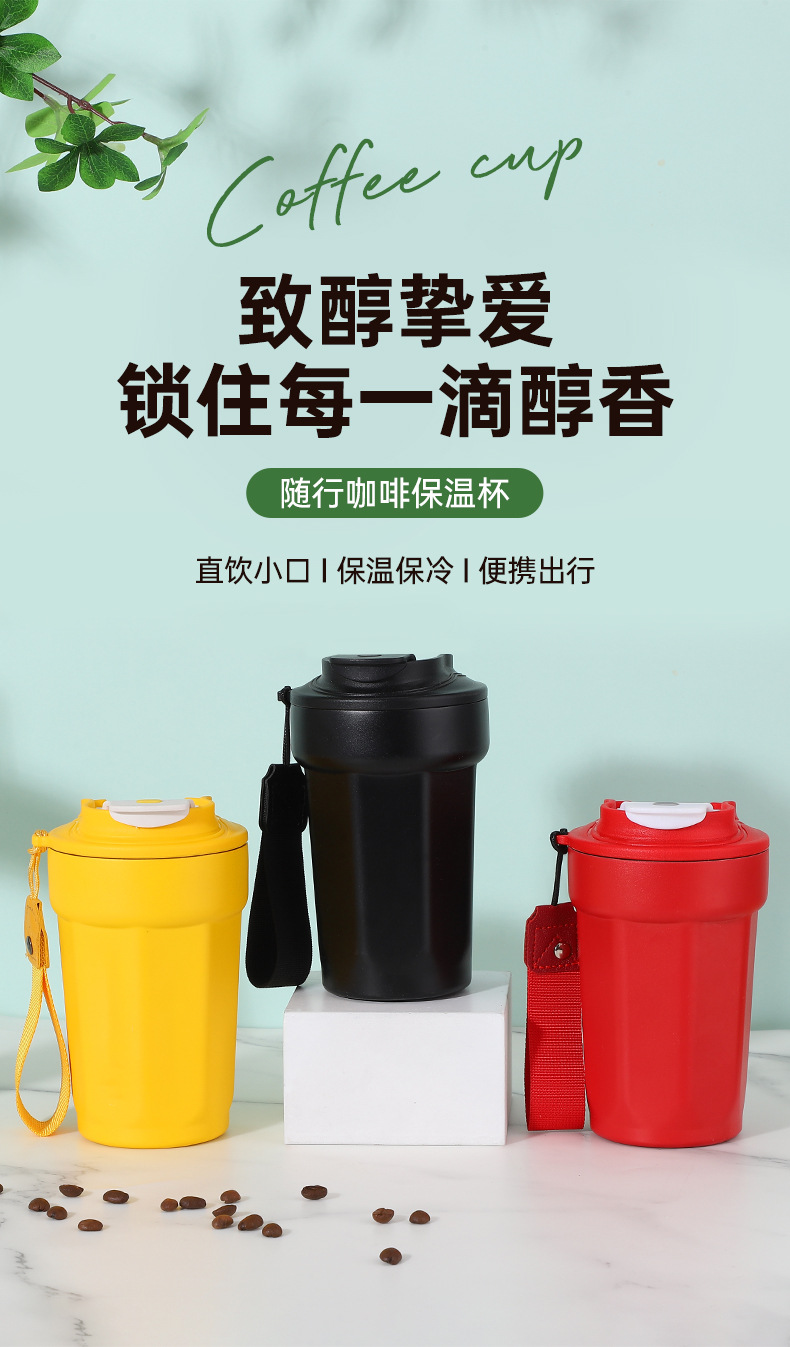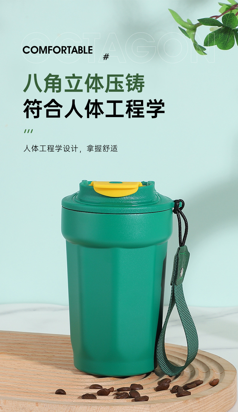 316ステンレス八角形コーヒーカップ携帯型ロープ付き車載直飲カップメーカー卸売り