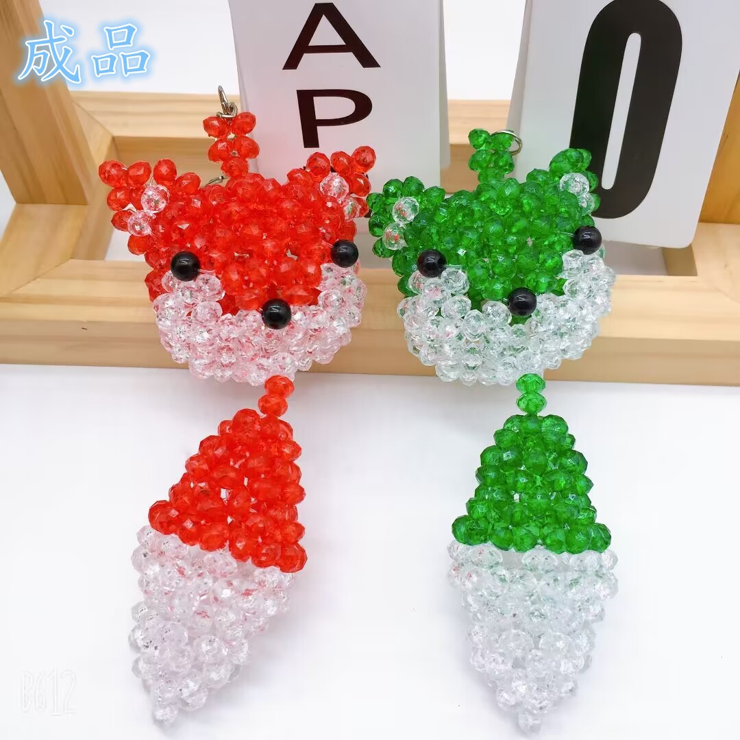 Diyハンドメイドビーズ金魚キーホルダーバッグチャーム手作り編みストラップ携帯ストラップ完成品