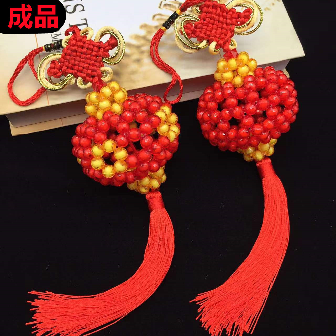 Diy手作りビーズ提灯完成品自動車ペンダント大紅平安装飾用中国結び流蘇