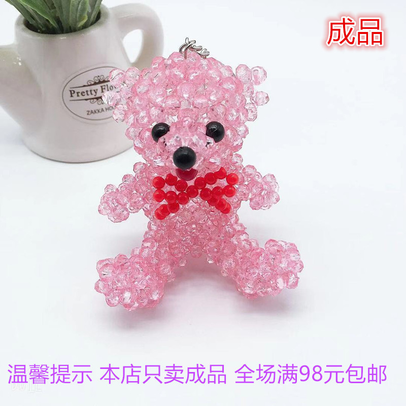 新品完成品純粋手編みクリスタルテディベアペンダント手作りビーズクリスタルキーホルダーバッグチャーム