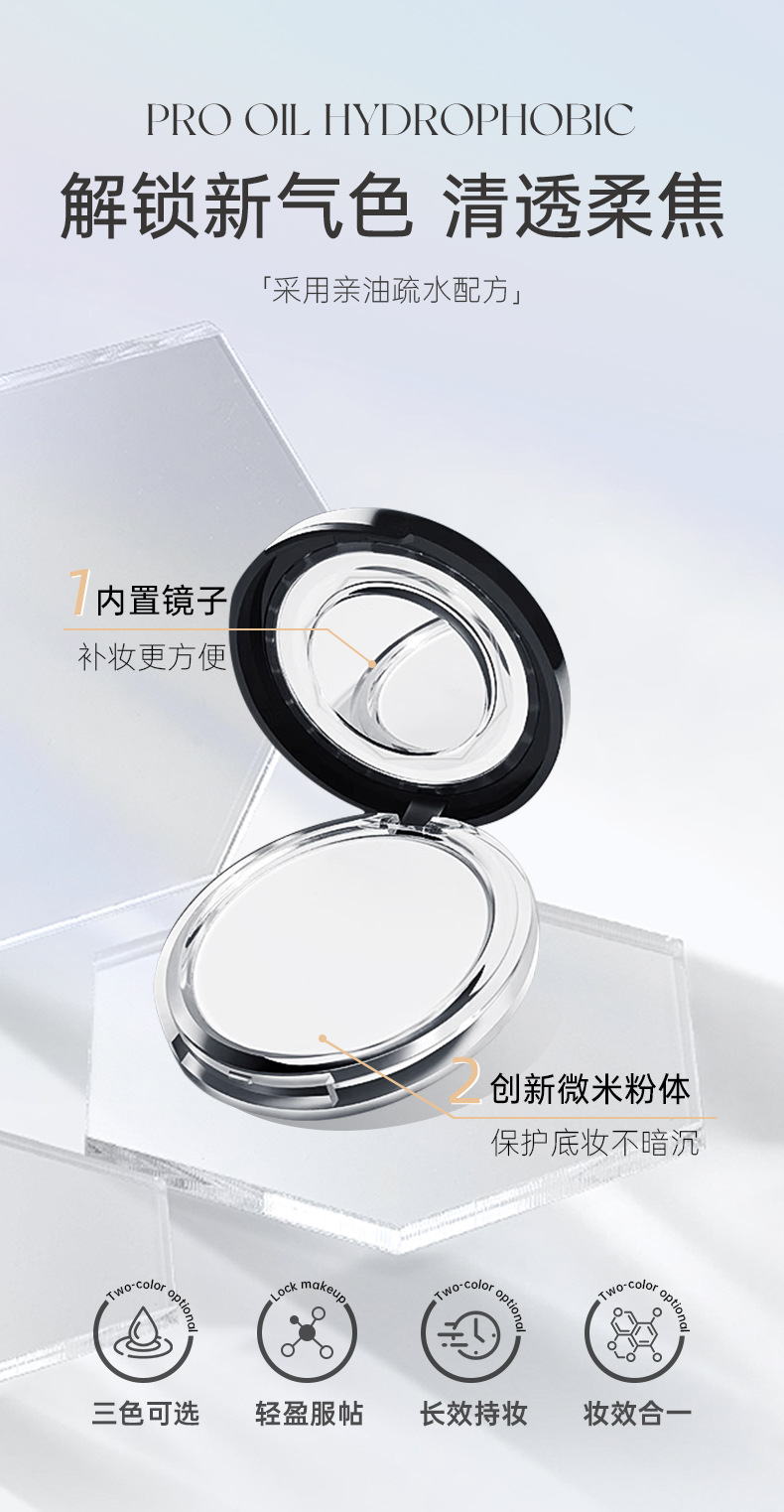 パウダーケーキ状のメイクアップセッティングパウダー、長時間キープ、オイルコントロール、粉がつきにくく、落ちにくい、防水、汗に強い、乾燥肌用、中国語と英語の外国貿易向け