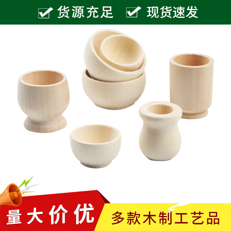儿童过家家厨房餐具迷你实木木碗小木碗杯子木罐创意彩绘涂鸦摆件