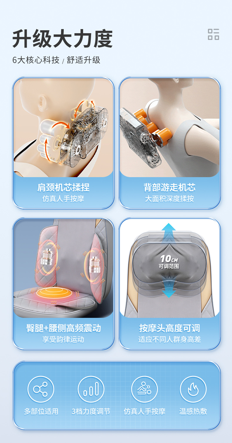 マッサージ器肩頚椎ウエスト背中自動多機能揉み椅子家庭用マッサージ器知能クッションマットレス