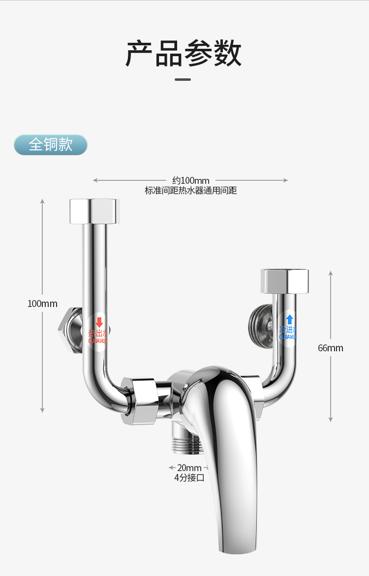 全銅電気温水器専用u型混水弁浴室冷熱蛇口スイッチ弁部品大全共通
