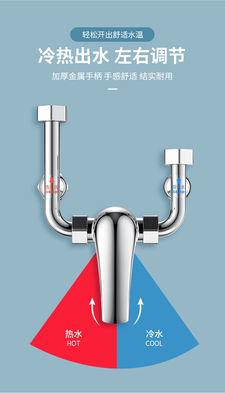 304不锈钢电热水器U型阀冷热淋浴浴室卫生间洗澡明装开关阀混水阀