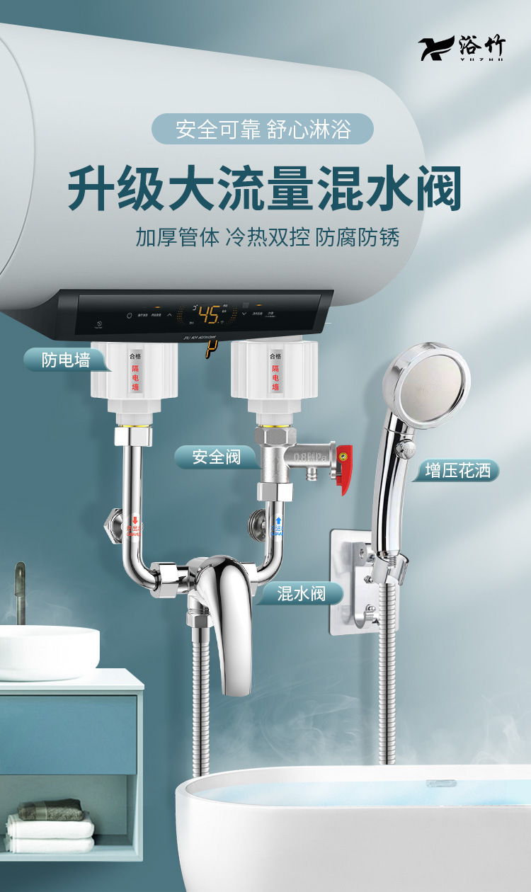 メーカー製品304ステンレス電気温水器混水弁入浴蛇口冷熱u型弁明装蛇口