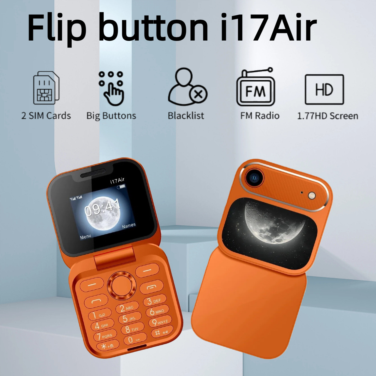 新款 i17 Air手机橙色跨境热卖外文折叠翻盖按键备用手机多国语言
