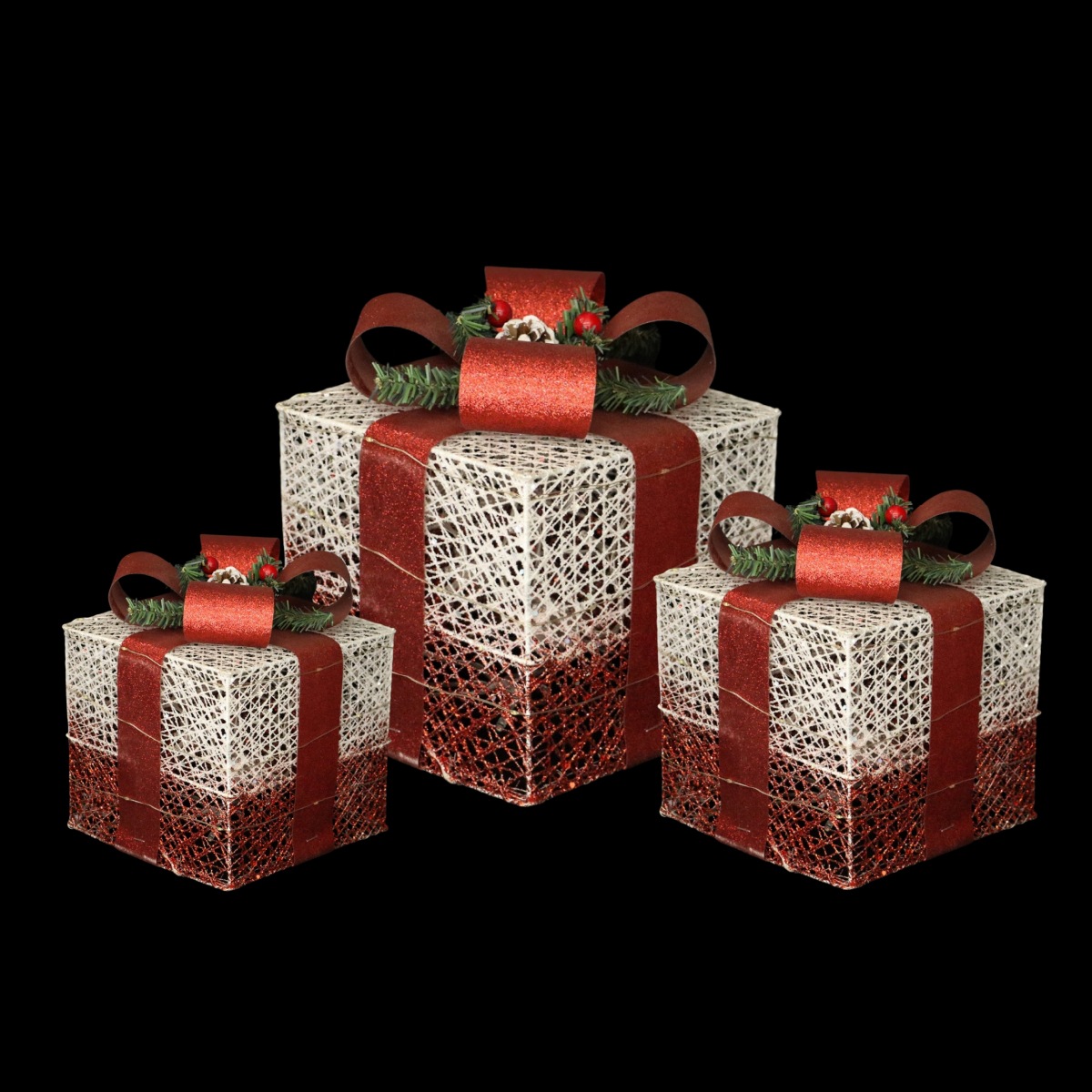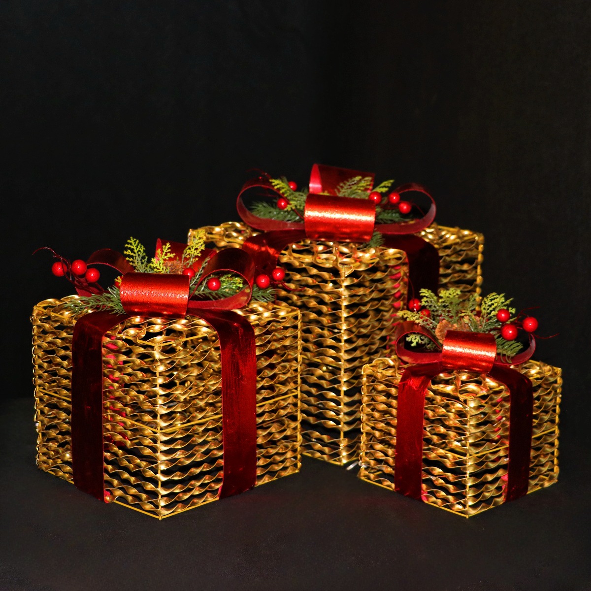 2025 クリスマス ギフトボックス 3点セット アイアンアート 発光ライト付き ギフトボックス 3点セット クリスマスツリーの下の雰囲気装飾