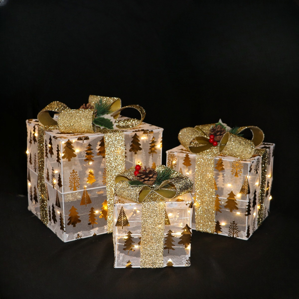 2025 クリスマス装飾装飾品鉄発光ギフトボックス 3 点セットクリスマス用品シーンレイアウト