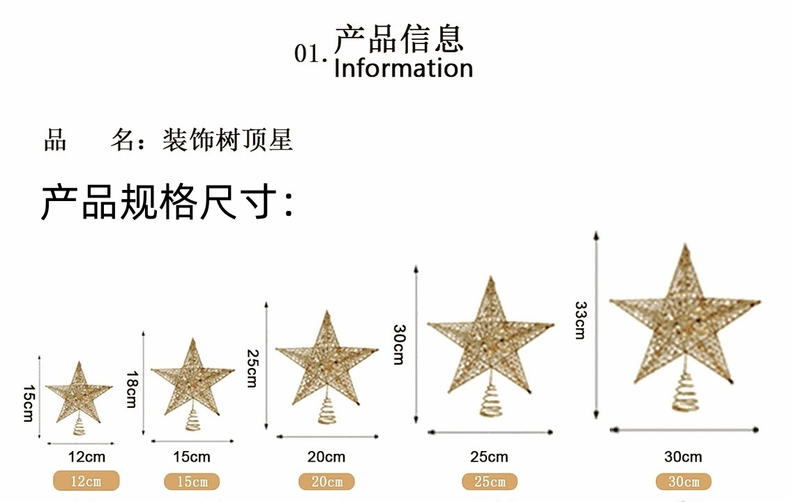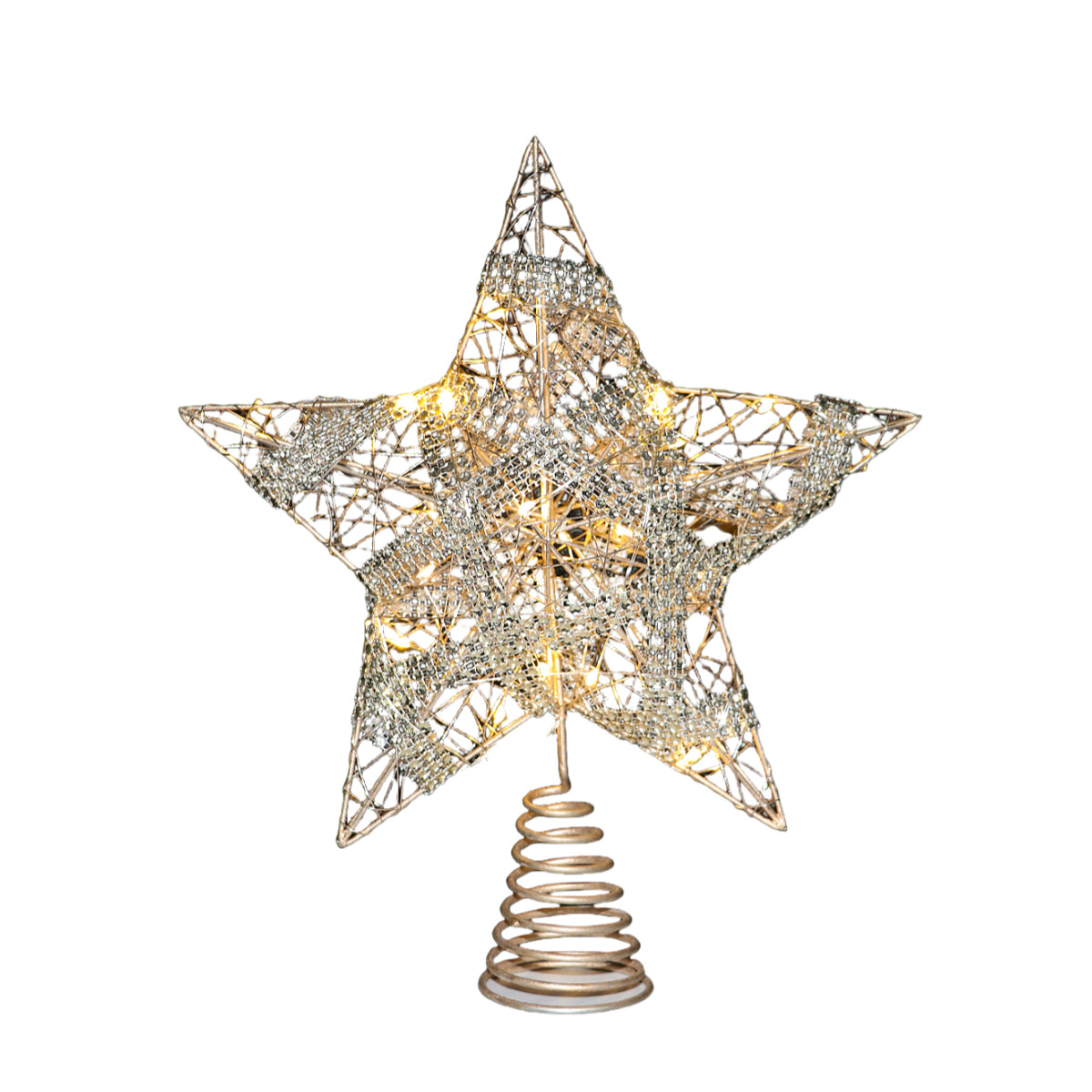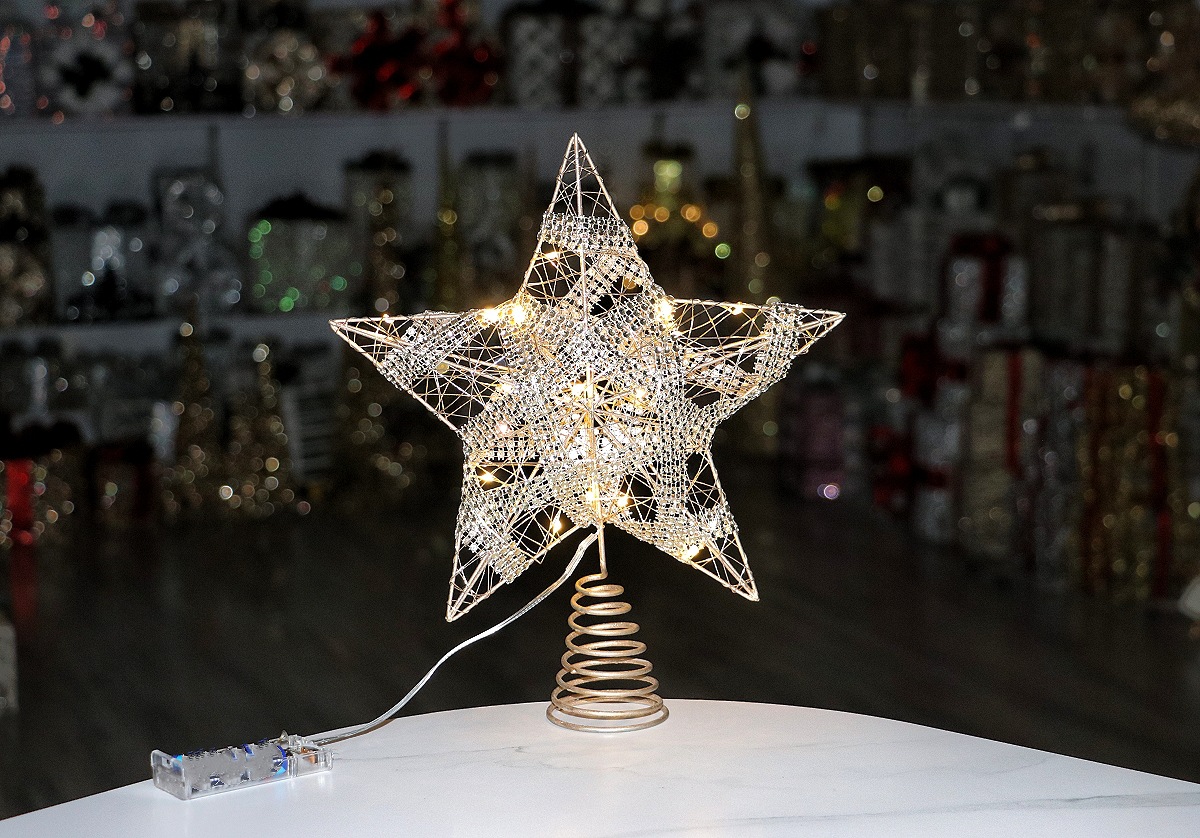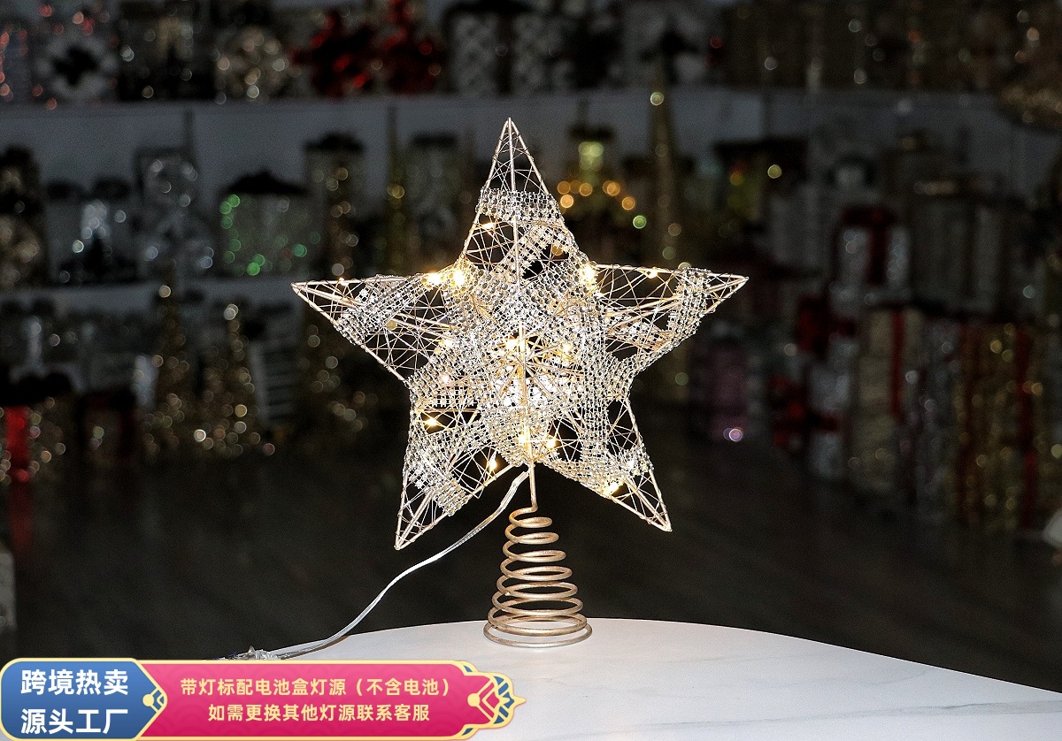 2025 クリスマスツリートップスター アイアンアート発光立体五芒星ツリートップスターゴールドパウダークリスマスツリートップデコレーション
