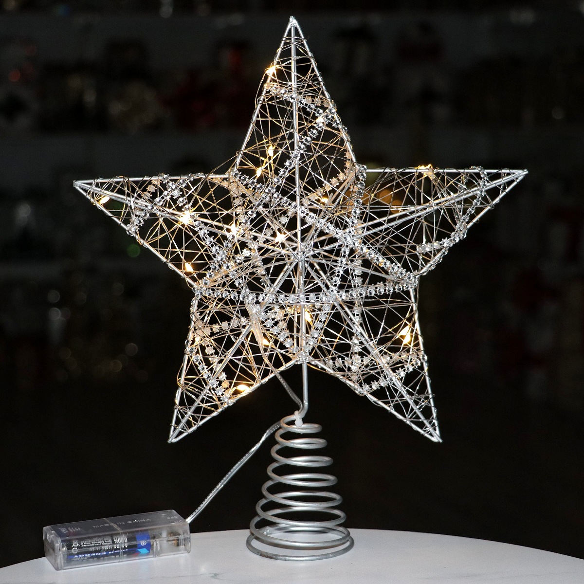 2025年クリスマスツリーのトップスター、鉄製の発光五芒星ライト、クリスマスツリーの飾り、クリスマスデコレーションギフト
