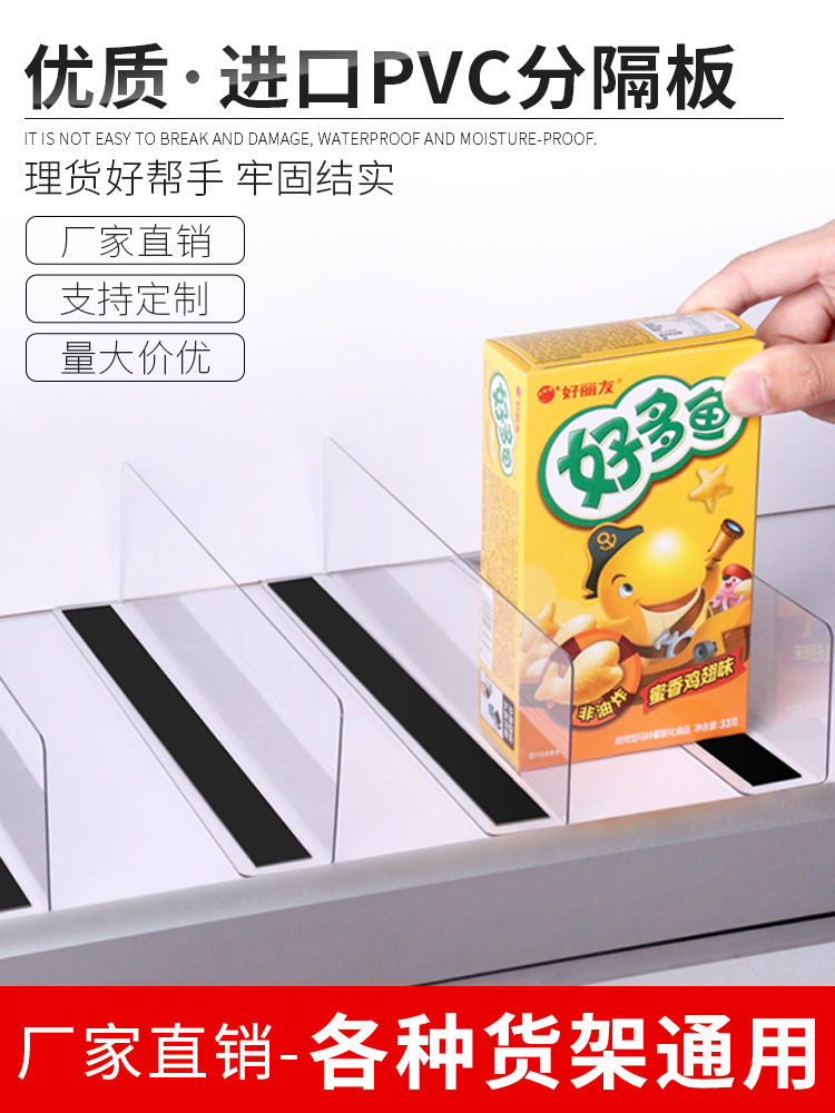 スーパーマーケットの棚のバッフル商品の仕切り板の物品の分類の仕切り板のコンビニの検品の透明なプラスチックの磁気は仕切り板を吸い込みます。