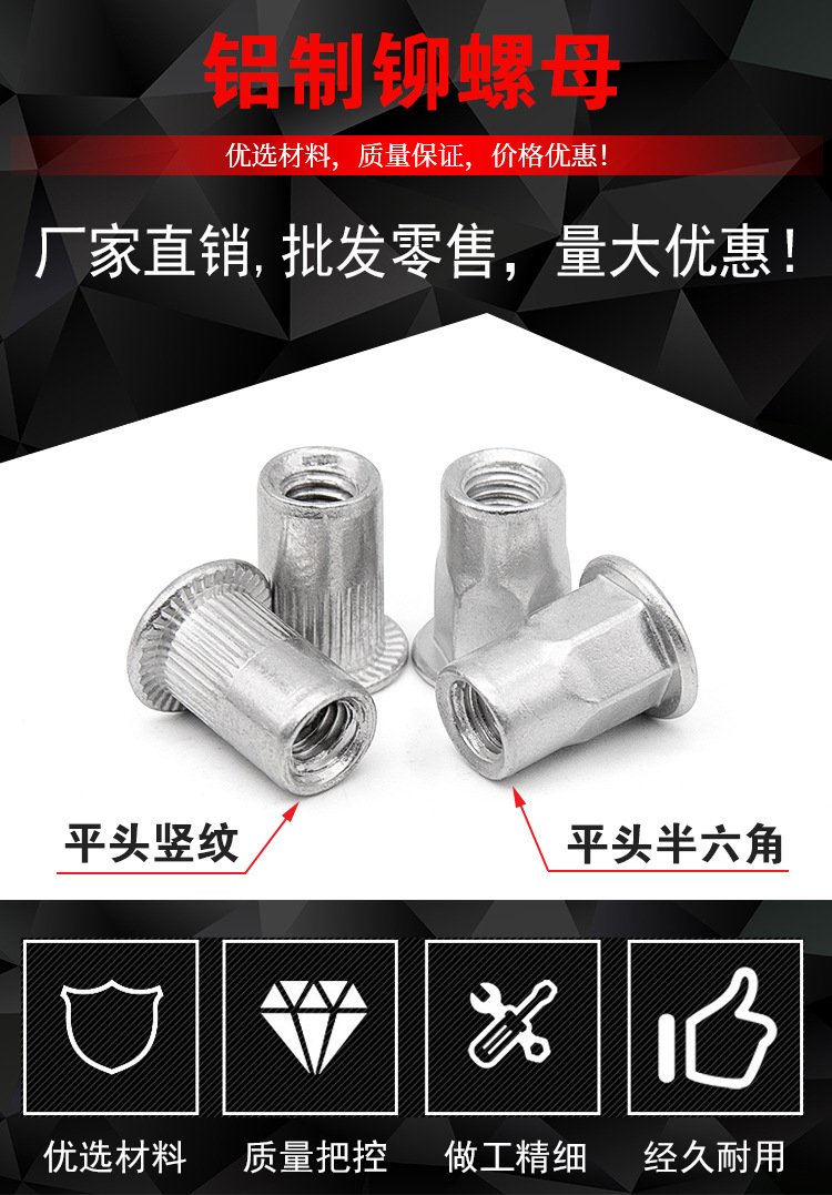 アルミ製リベットナット平頭縦紋アルミリベットナット平頭半六角アルミ毛リベットM34568M10m12