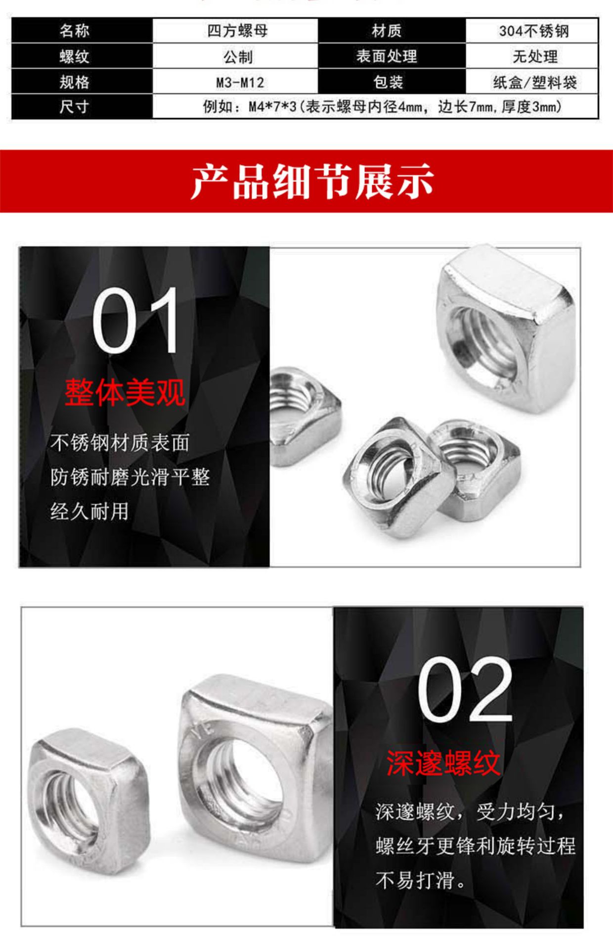 304/201ステンレス製四角ナット角型四角薄ナット三m 5m 6m 8 DIN577