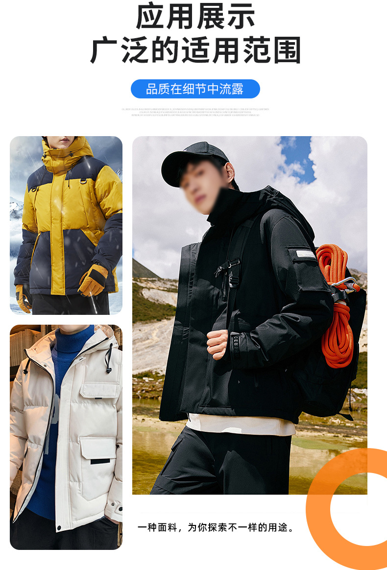 メーカーは75D高弾性ポリエステル生地を供給しており、柔らかく快適で通気性のあるジャケット、コットンコート、ダウンジャケットの生地として、アウトドアに最適です。