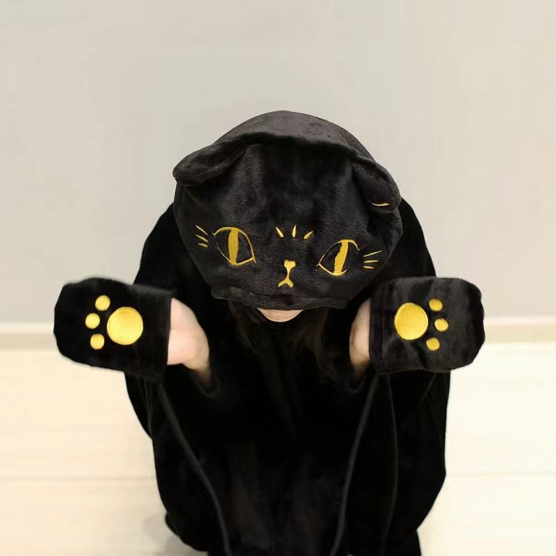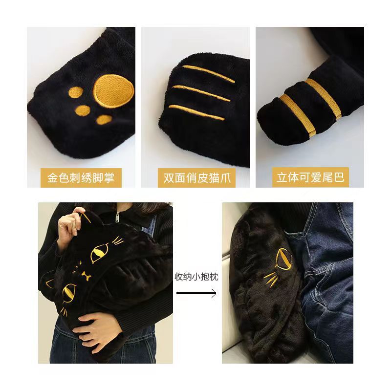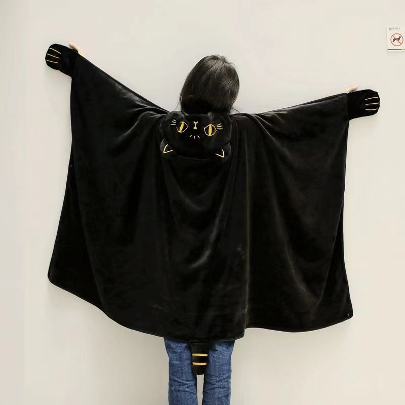 フニーナ 女の子用流光ケープ マント ブランケット 漫画風昼寝ブランケット 黒猫小埋ケープ フランネルエアコンブランケット