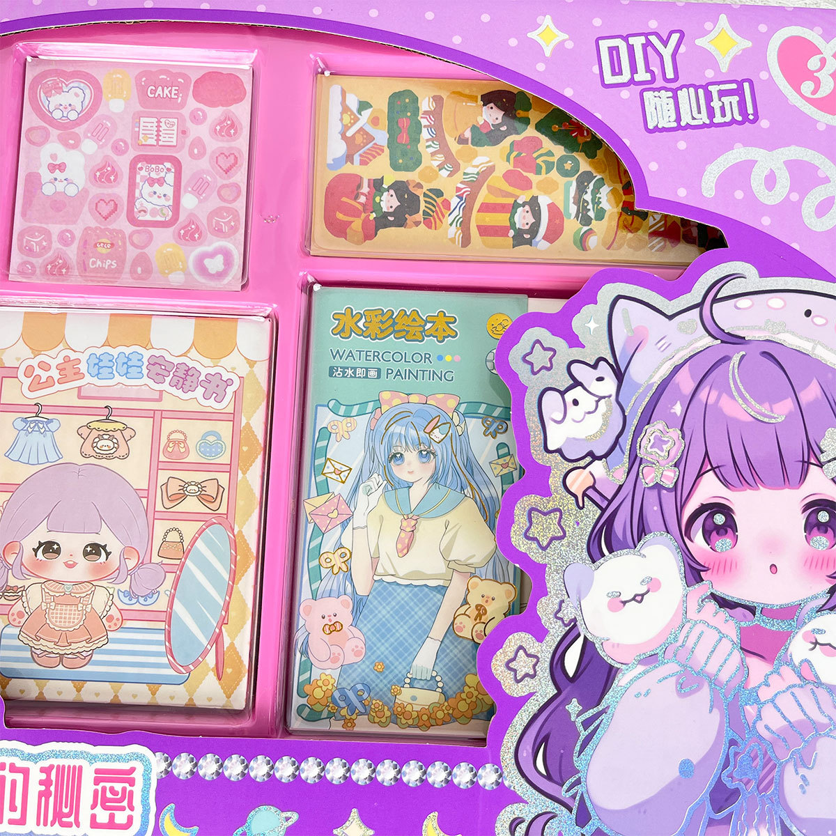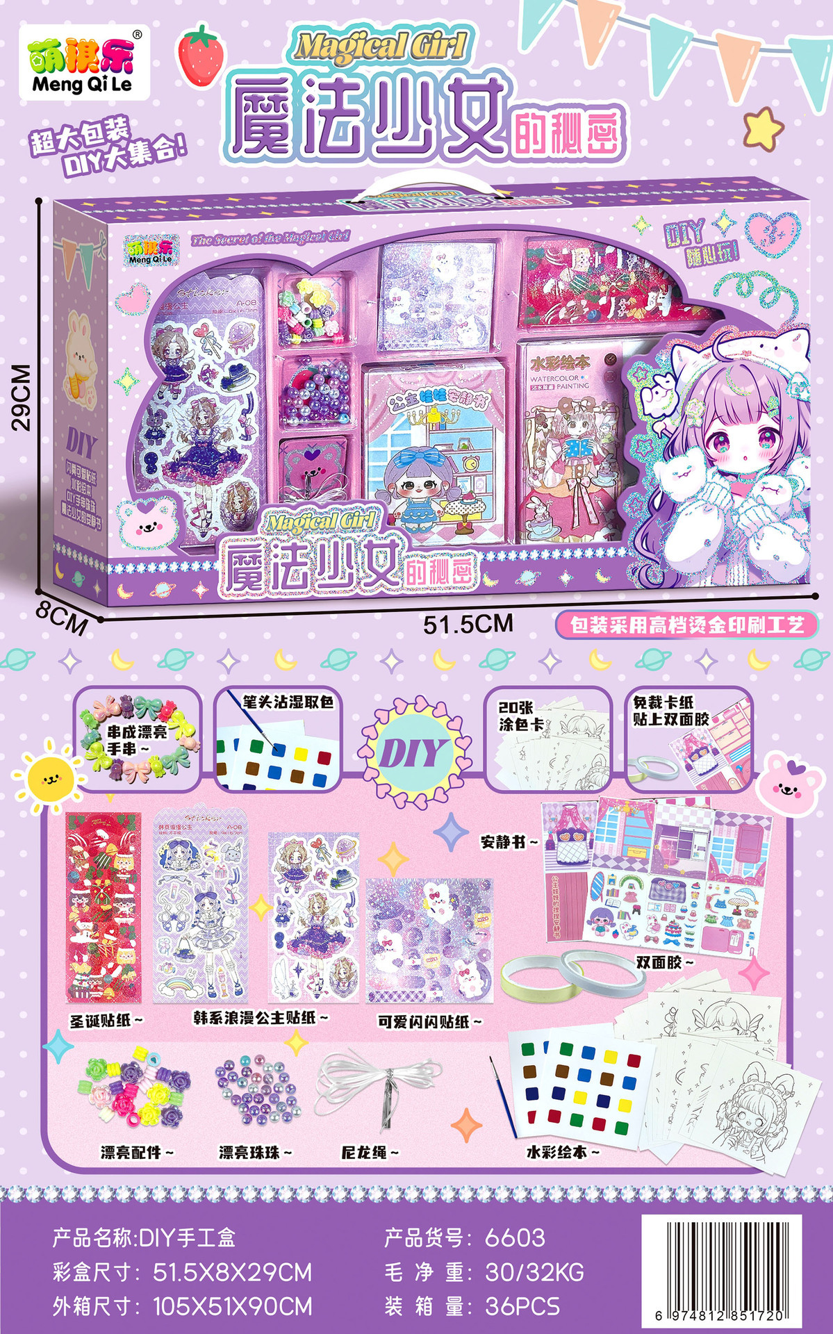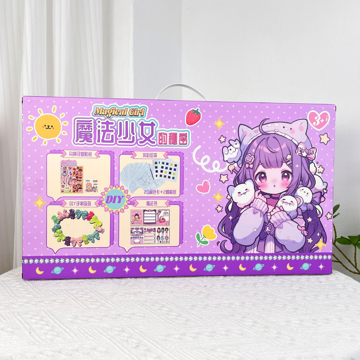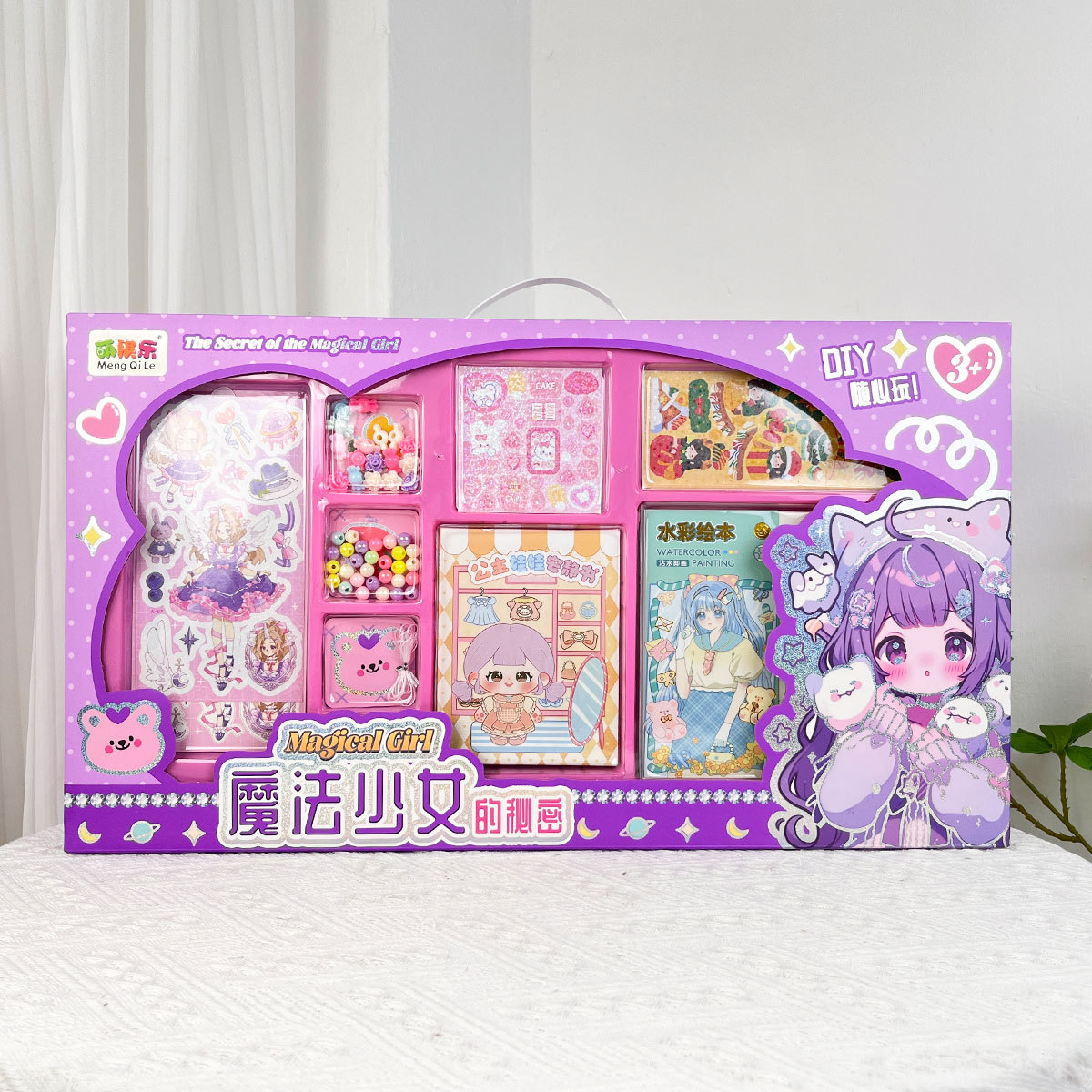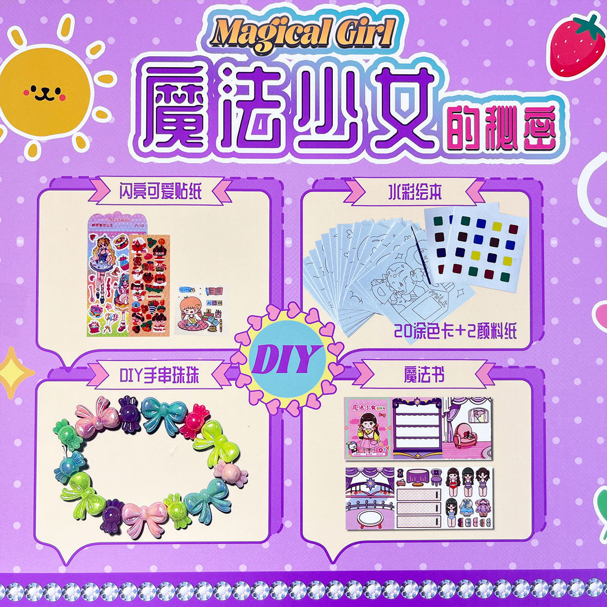 子供魔沙少女水彩絵本シールセットプレゼントケースDIY手作りビーズ流砂機構プレゼント玩具