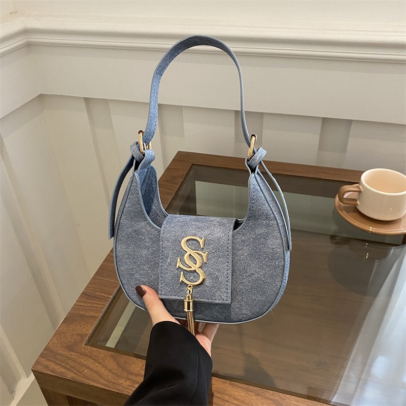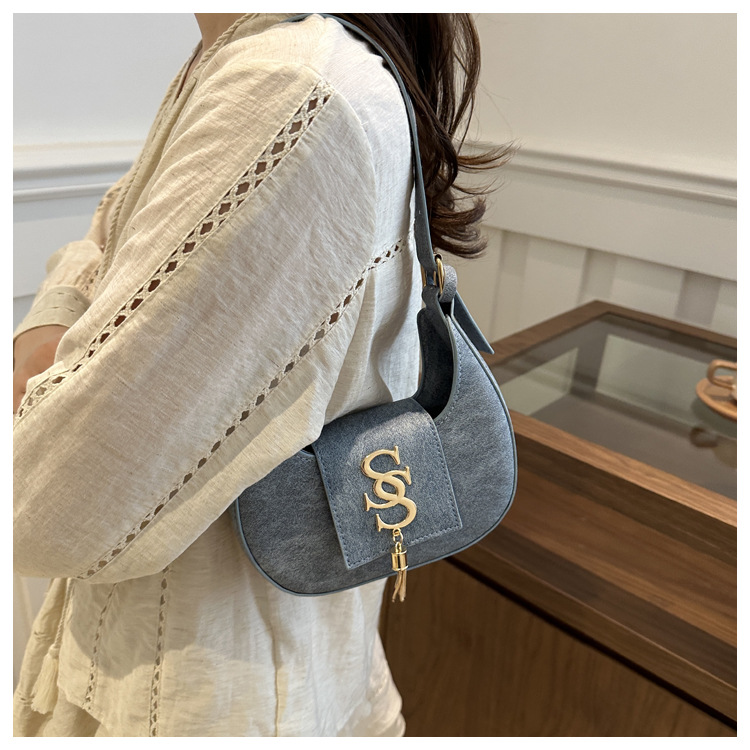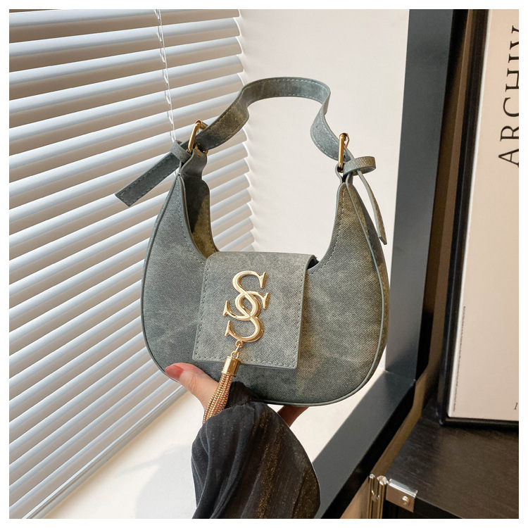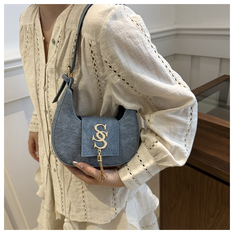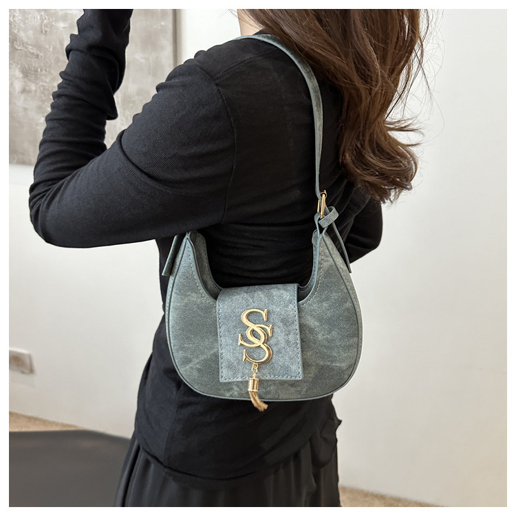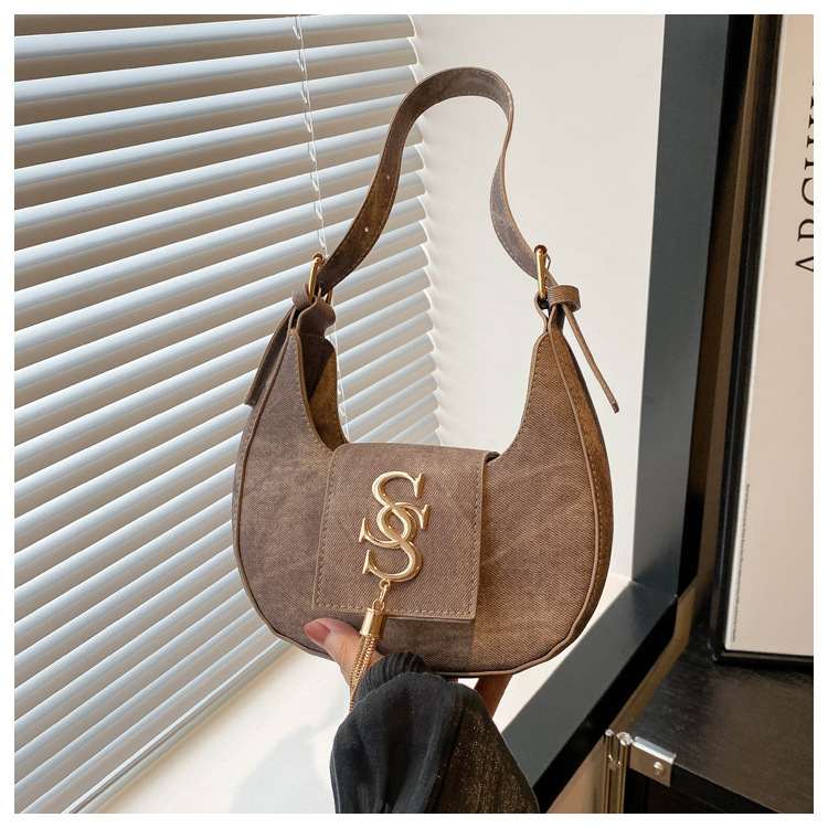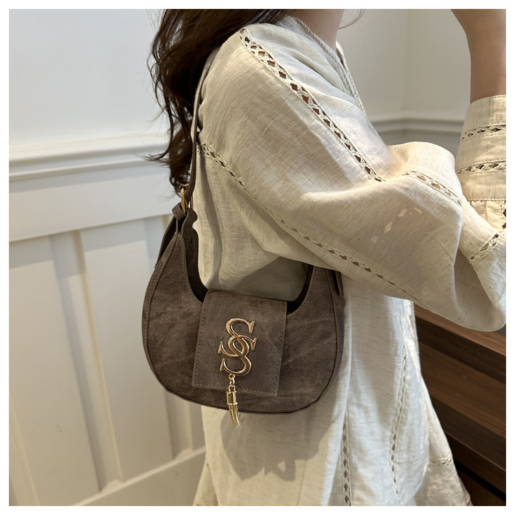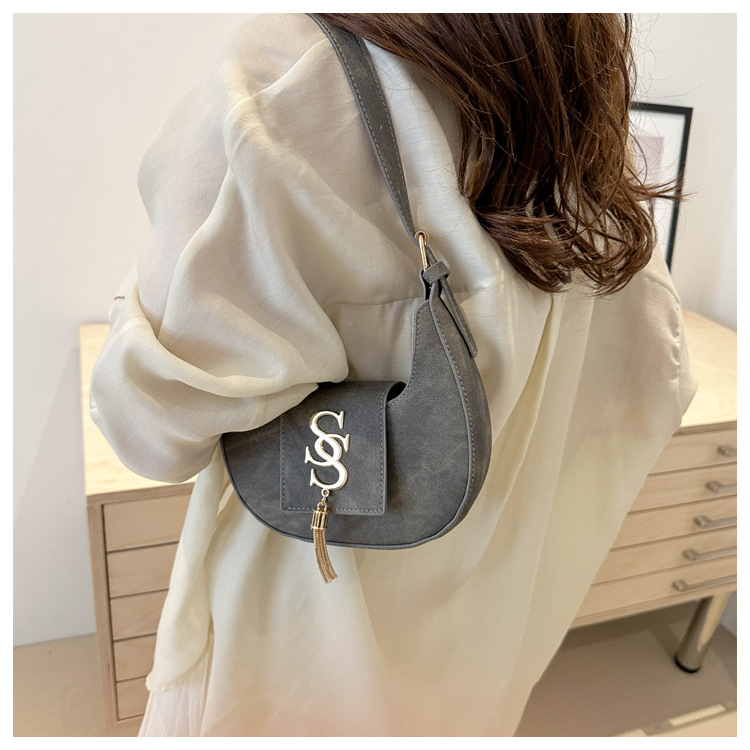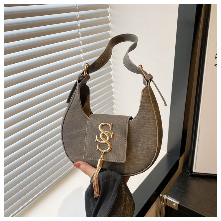 夏の2024新型ファッション韓国版レトロ唯美脇下バッグシングルショルダーバッグ洋風新月バッグ