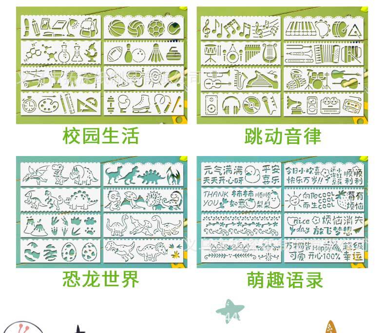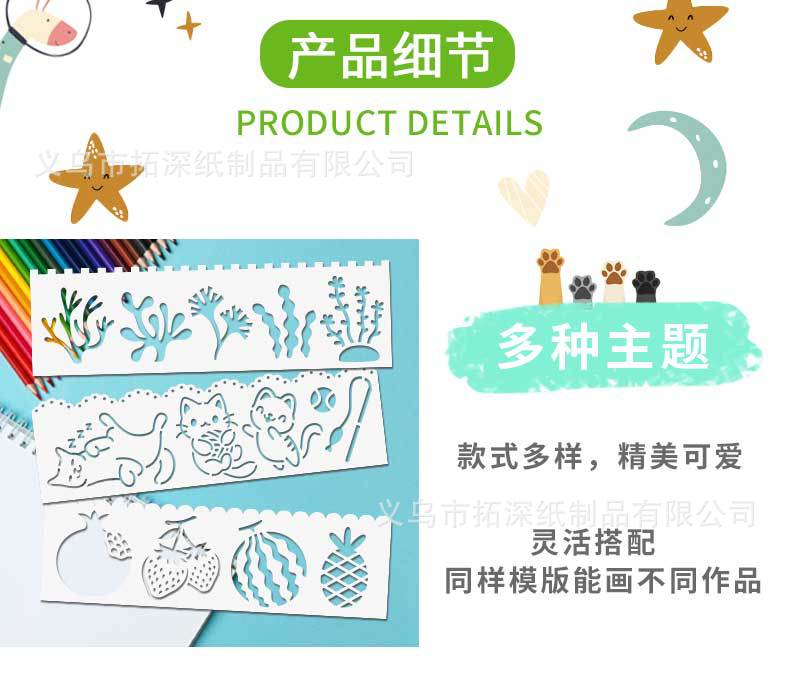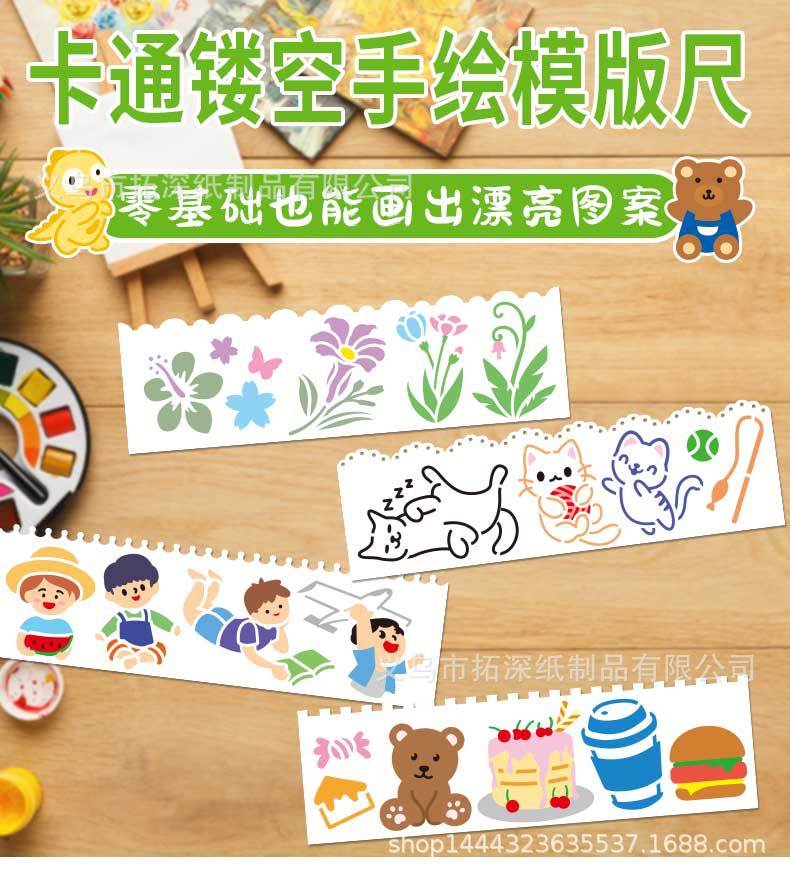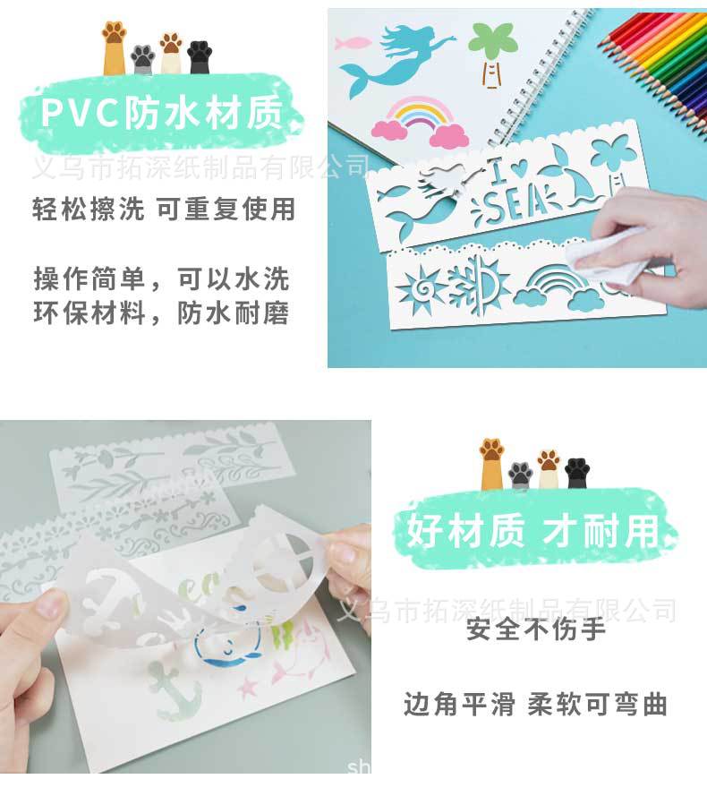 オリジナルの長い絵のテンプレートの手帳多機能の透かし彫りのレースの定規は色のテンプレートの子供の手で新聞を書き写します。