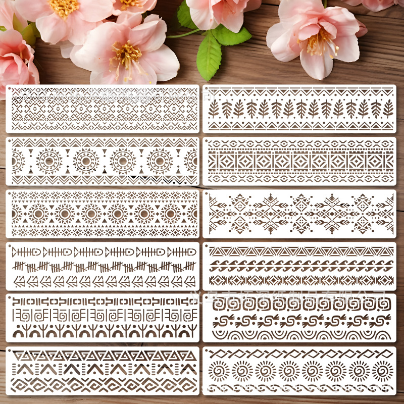 跨境部落边框 波西米亚花边 绘画模板 墙体手账彩绘喷绘装饰
