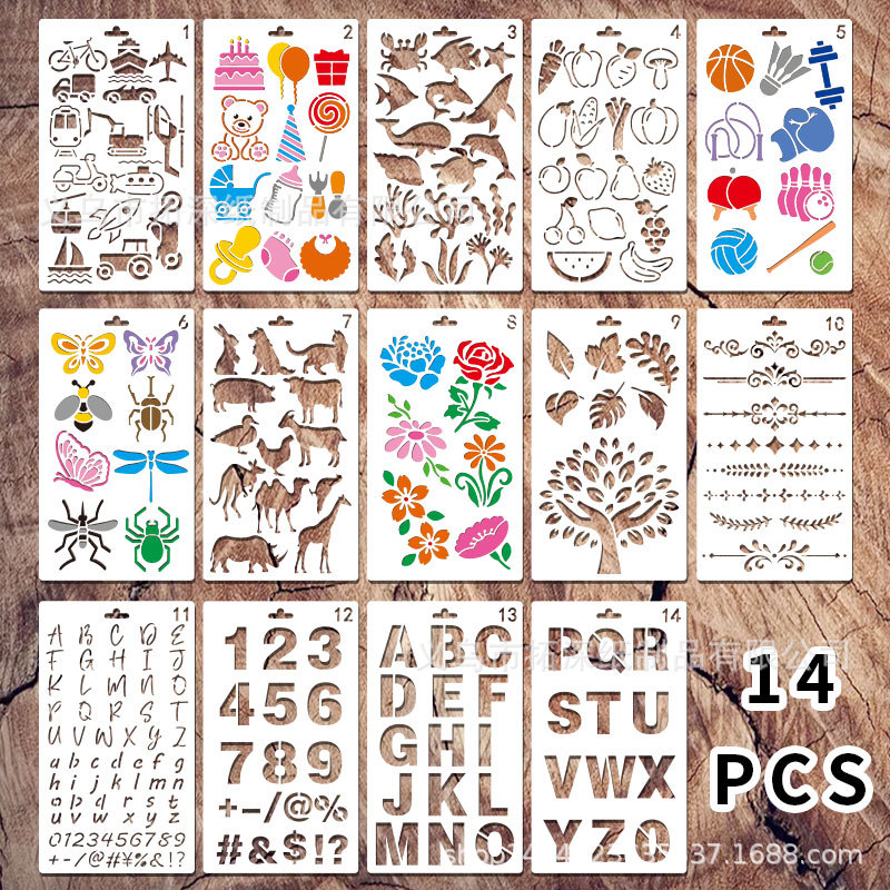 アマゾン英語アルファベット数字絵画テンプレート動物植物野菜シリーズ透かし彫り児童絵画ツール