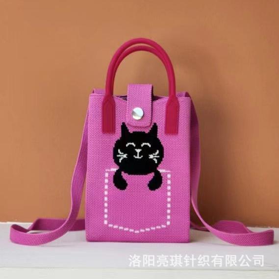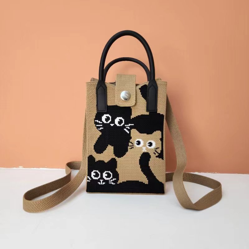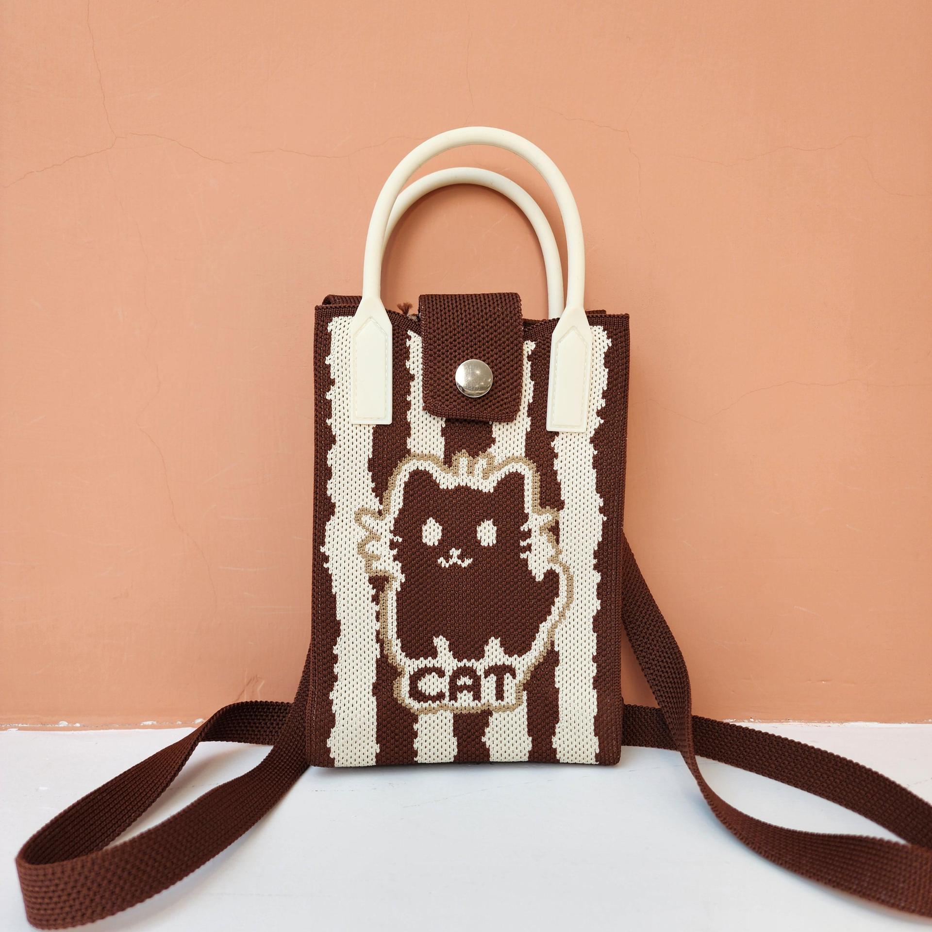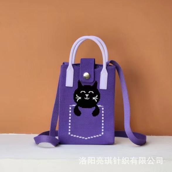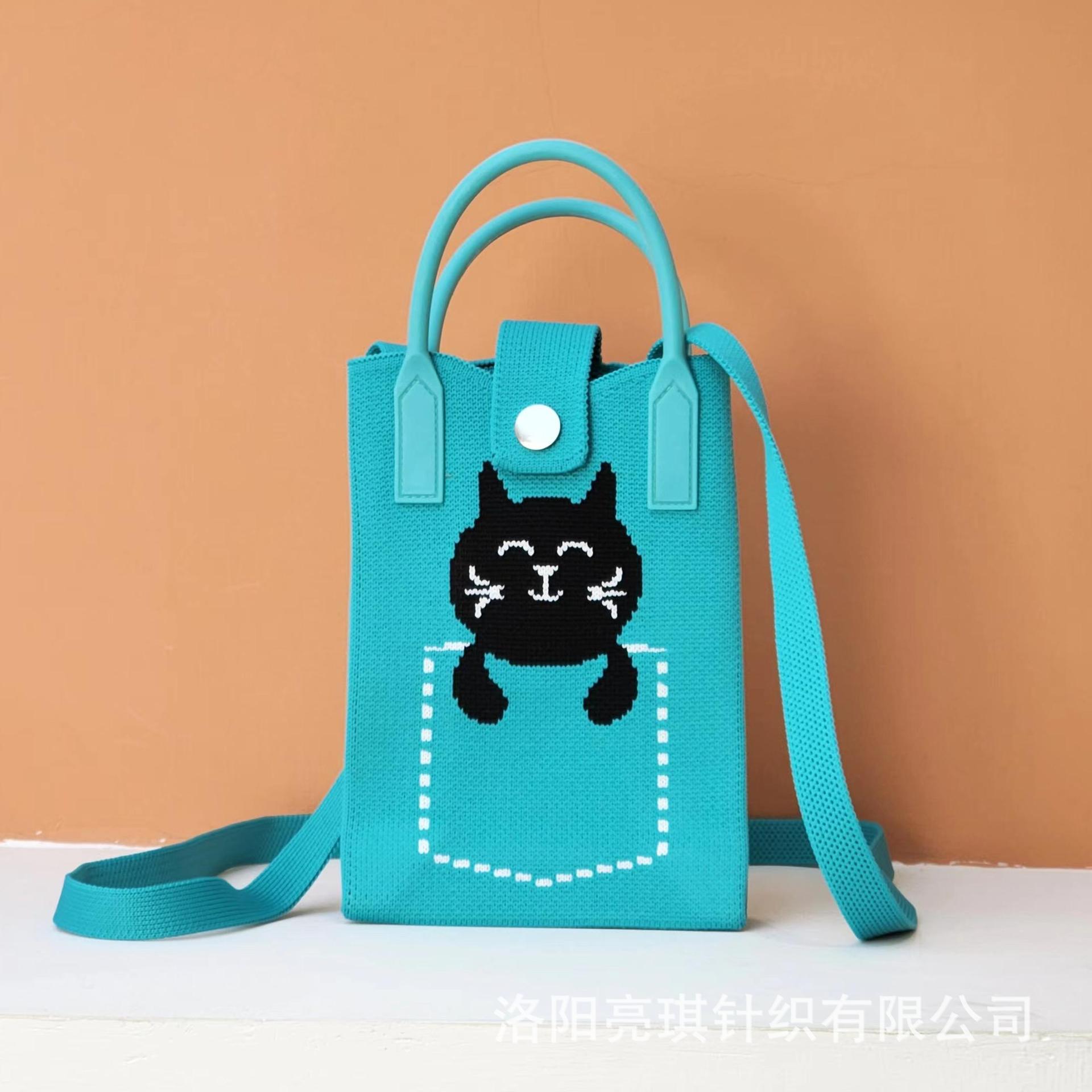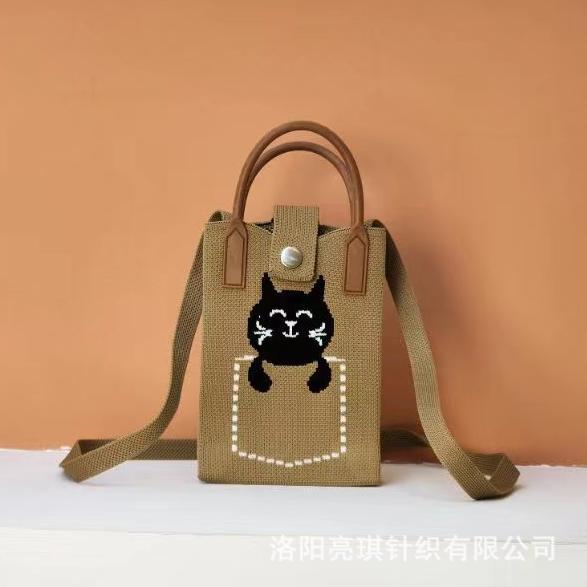新しい編み込み携帯電話バッグ、かわいい漫画の猫のニットバッグ、女性用カジュアルバッグ、高級感のあるバッグ、ファッショナブルな通勤バッグ
