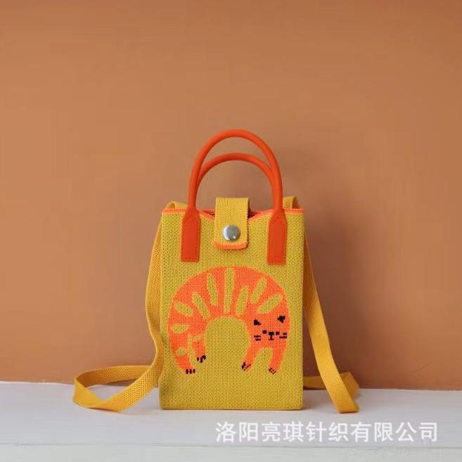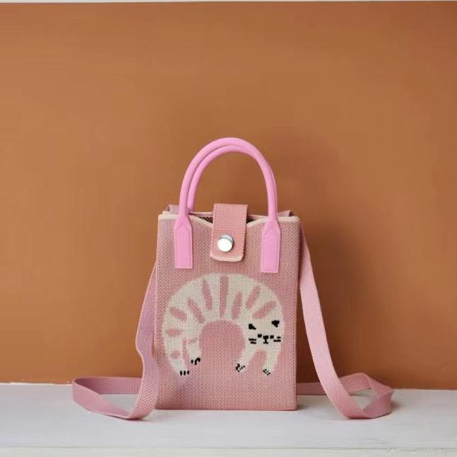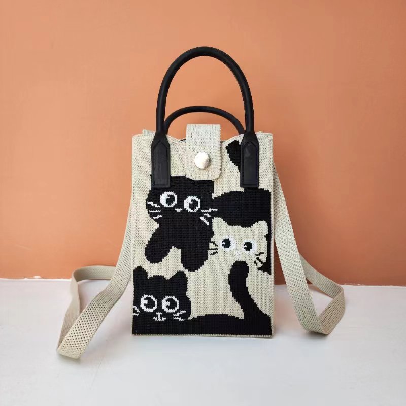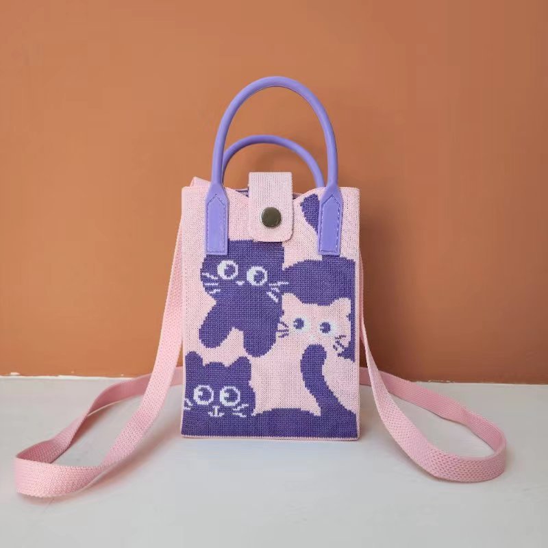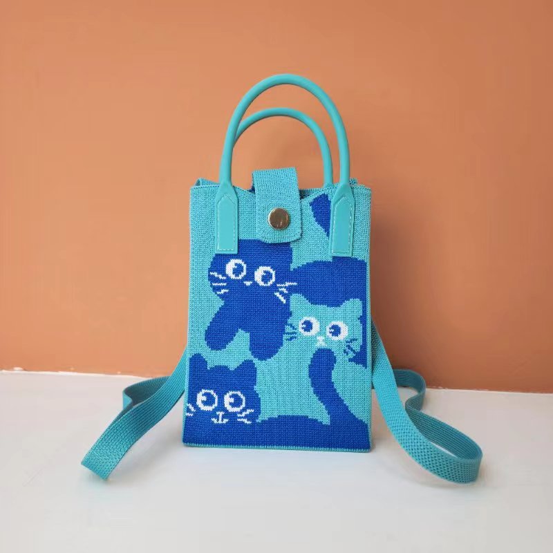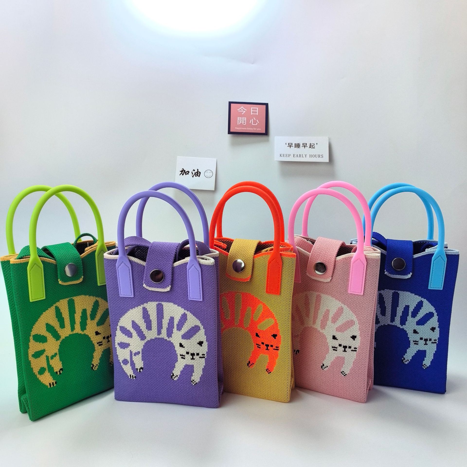 新しい編み込み携帯電話バッグ、かわいい漫画の猫のニットバッグ、女性用カジュアルバッグ、高級感のあるバッグ、ファッショナブルな通勤バッグ