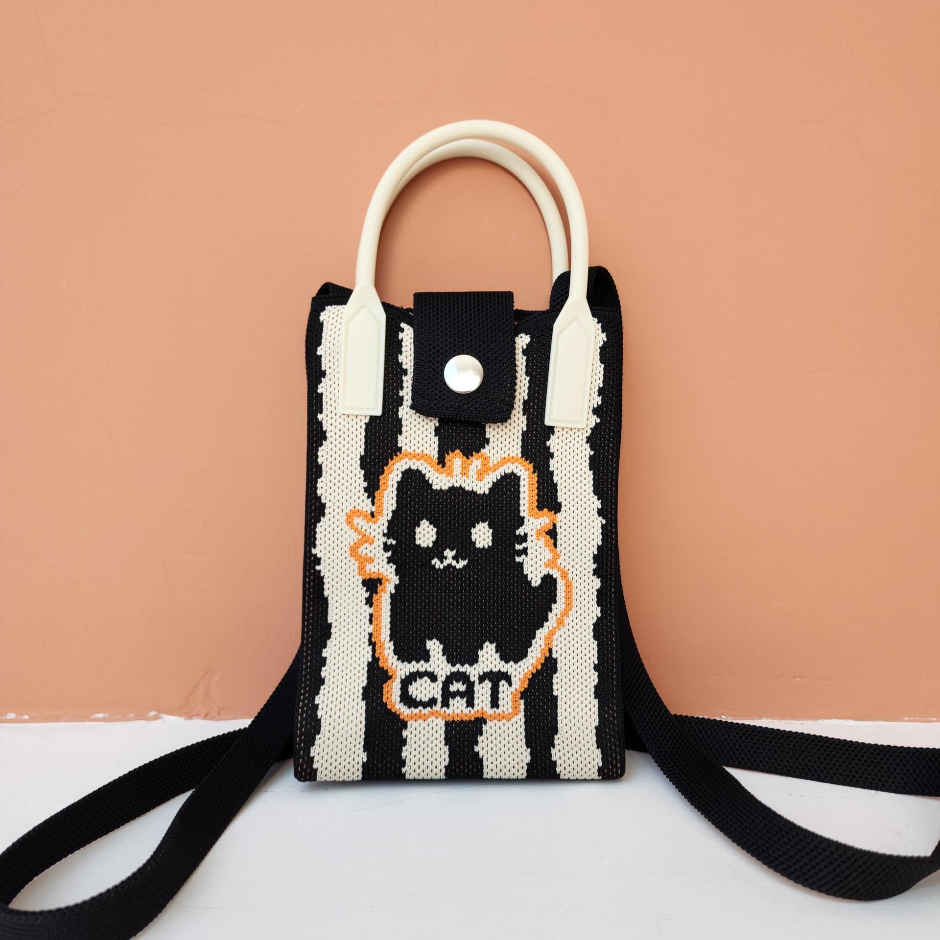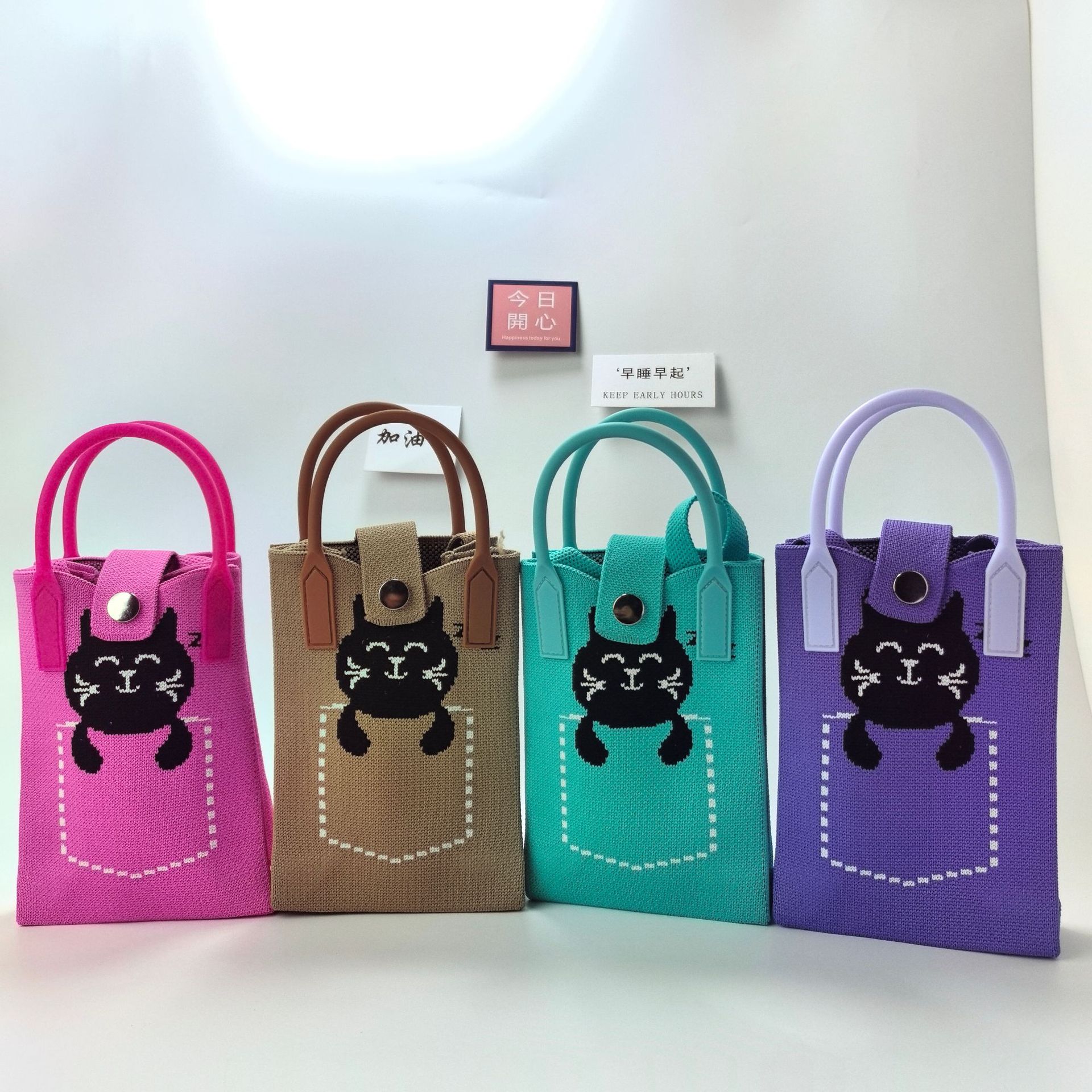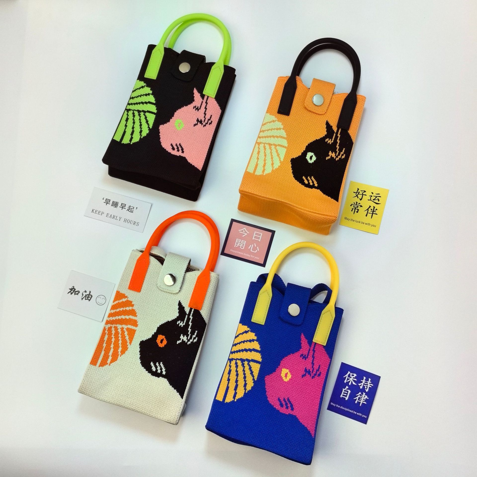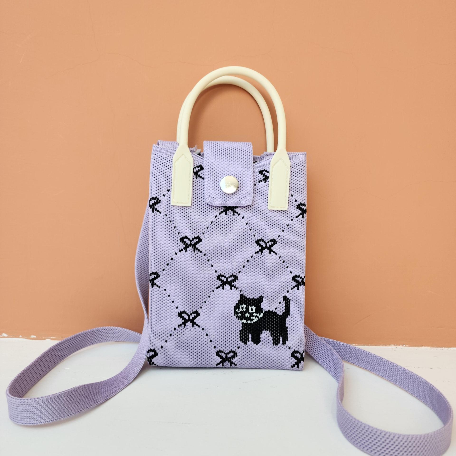 新しい編み込み携帯電話バッグ、かわいい漫画の猫のニットバッグ、女性用カジュアルバッグ、高級感のあるバッグ、ファッショナブルな通勤バッグ