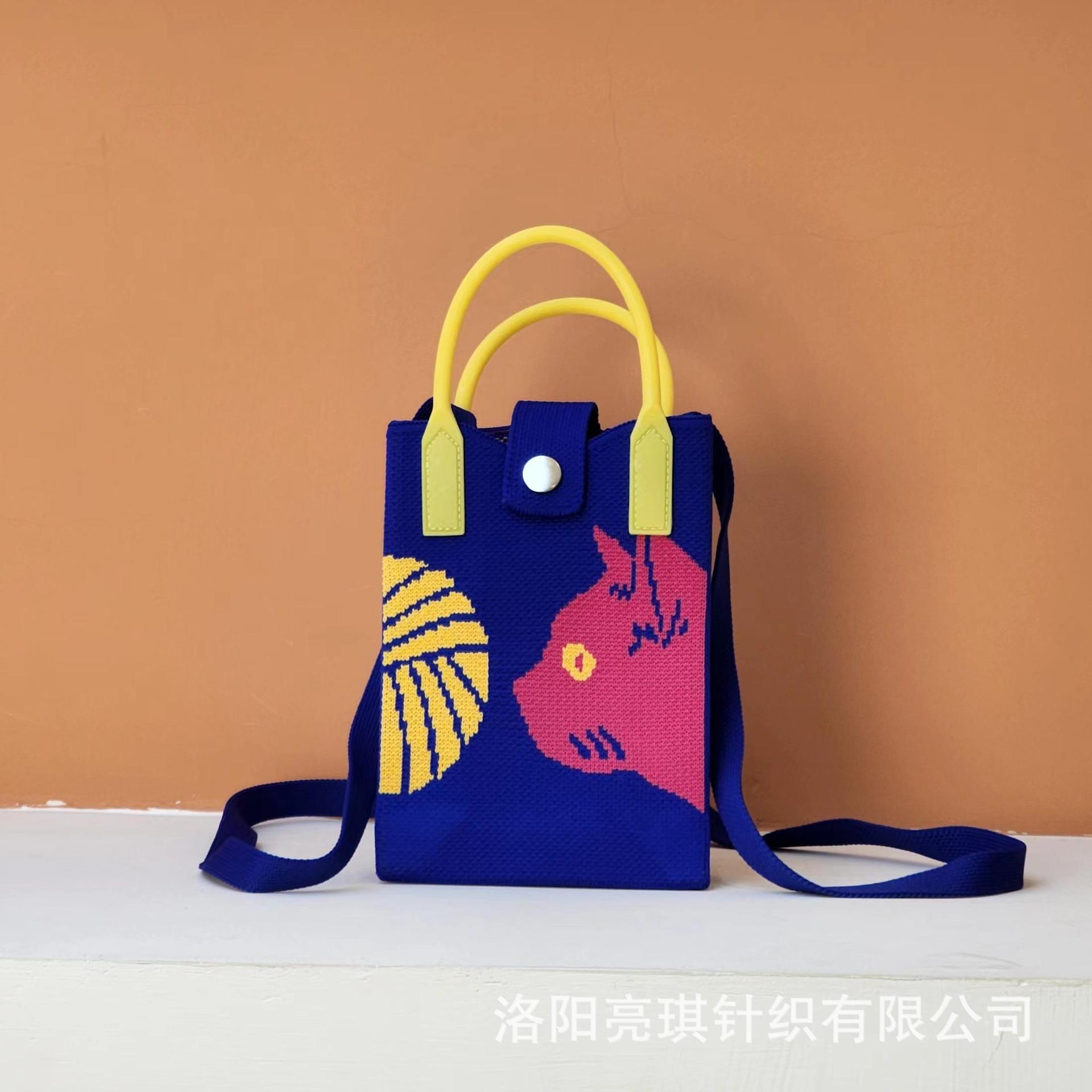 2025 新しい漫画携帯電話バッグニットバッグメッセンジャーバッグ織ファッション多用途ニットバッグ小さな正方形バッグ