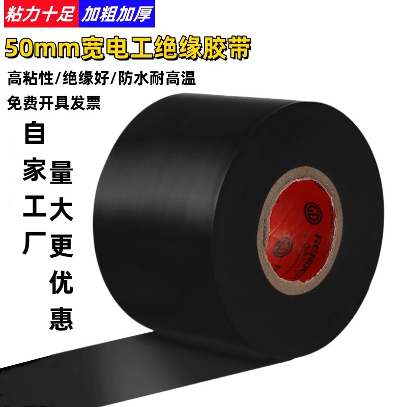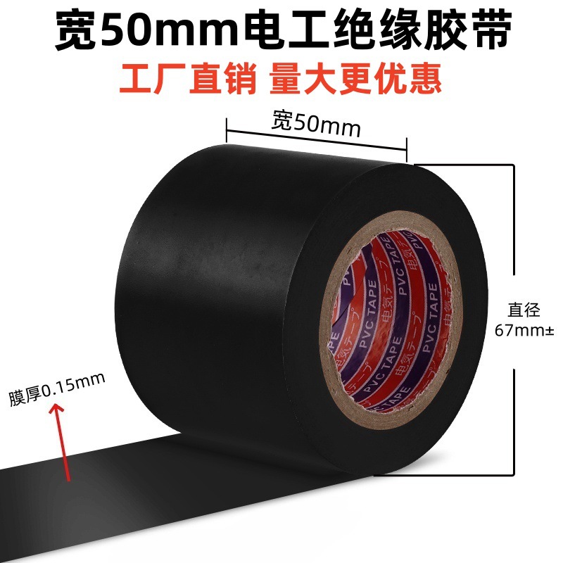 PVC加宽胶布5公分电工胶带电气耐高温防水黑色胶布管道超粘绝缘