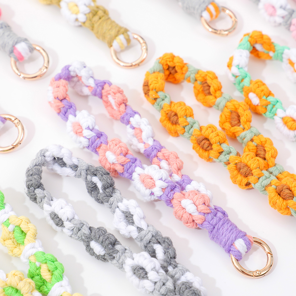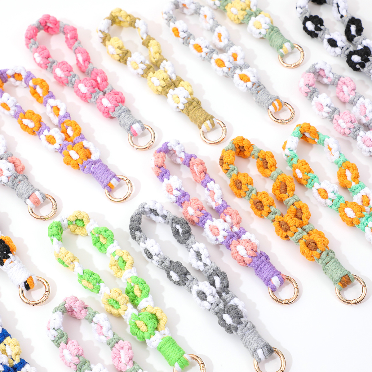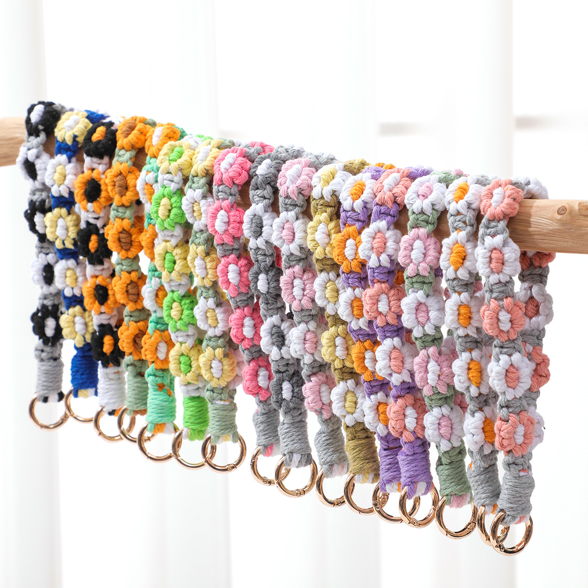 ボヘミアン手編みデイジー花ストラップコットンキーホルダーキーホルダーペンダント