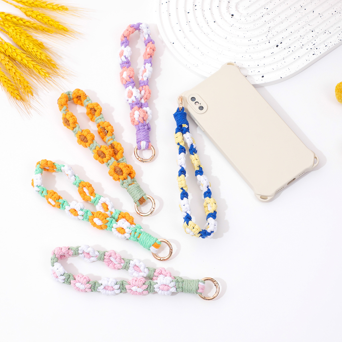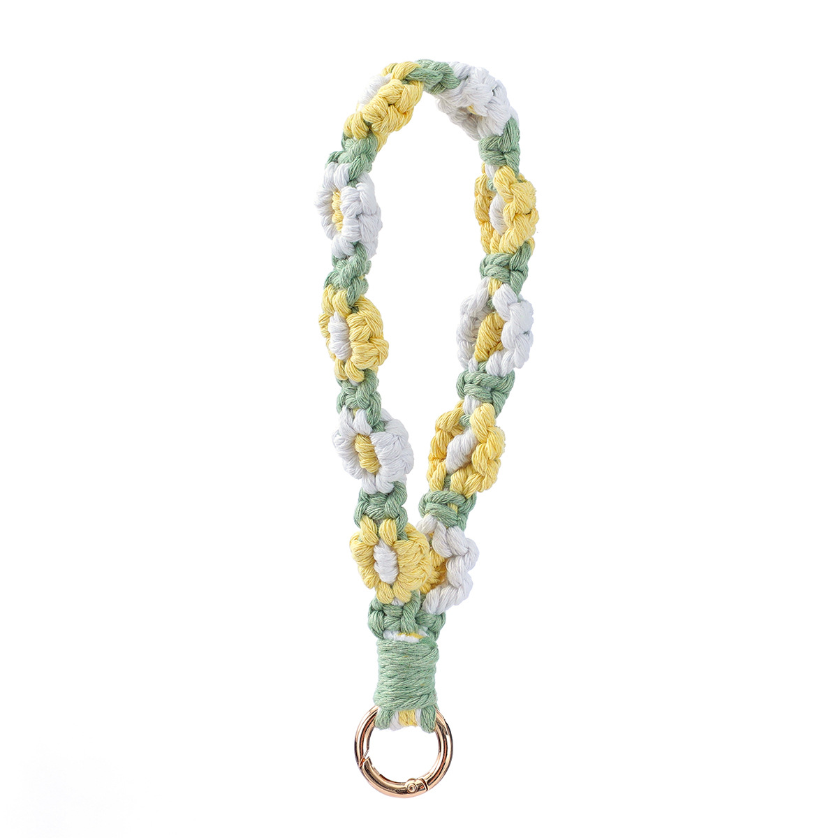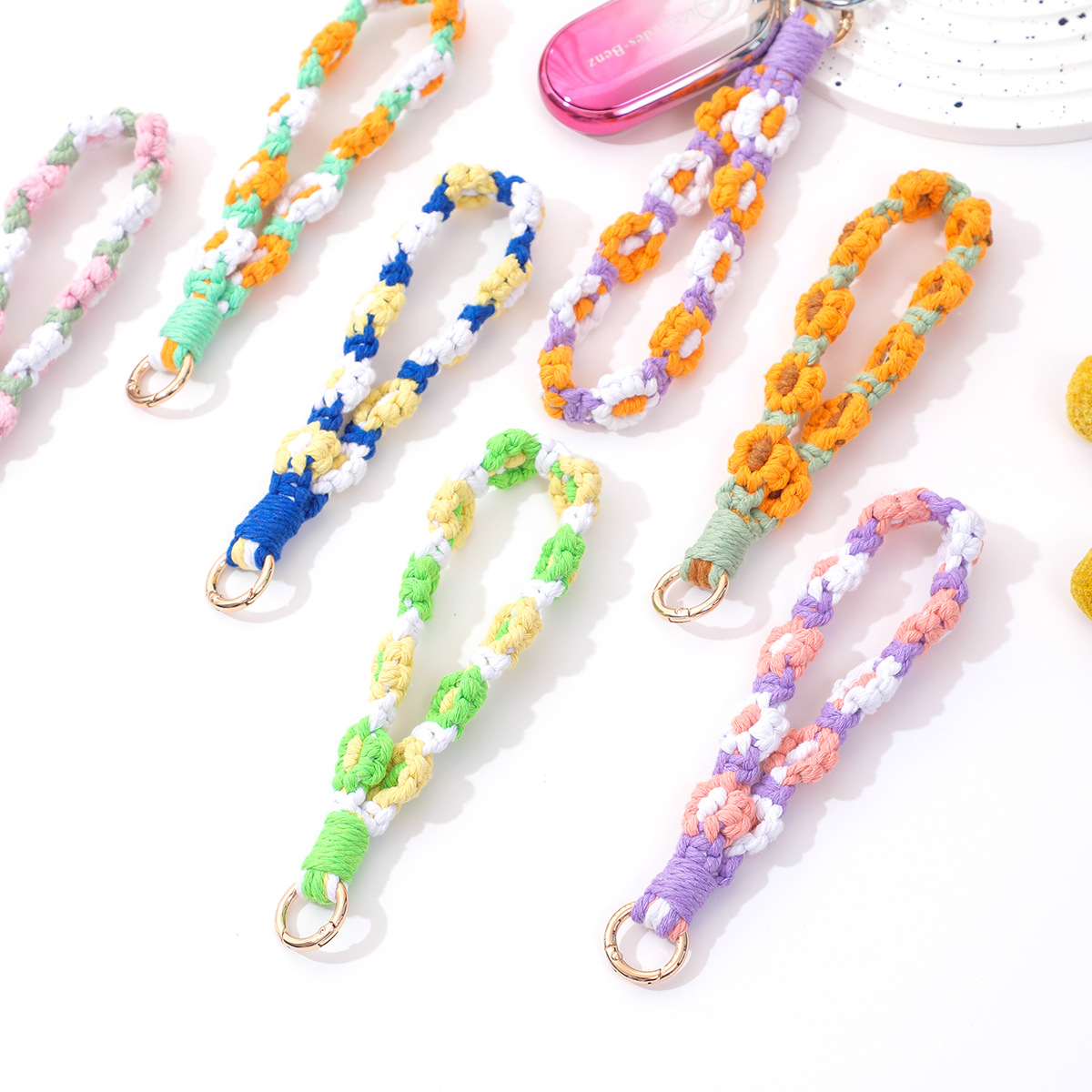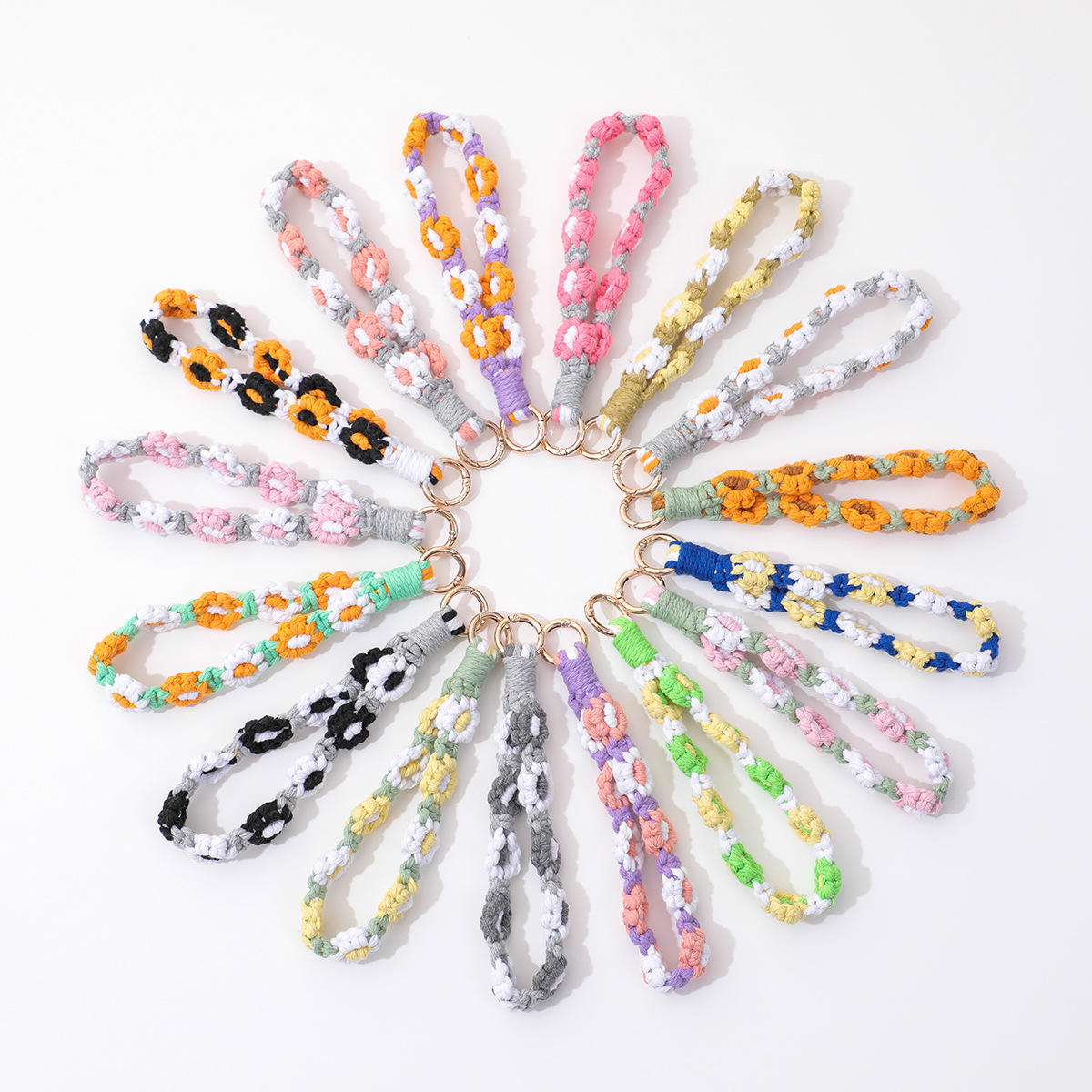ボヘミアン手編みデイジー花ストラップコットンキーホルダーキーホルダーペンダント