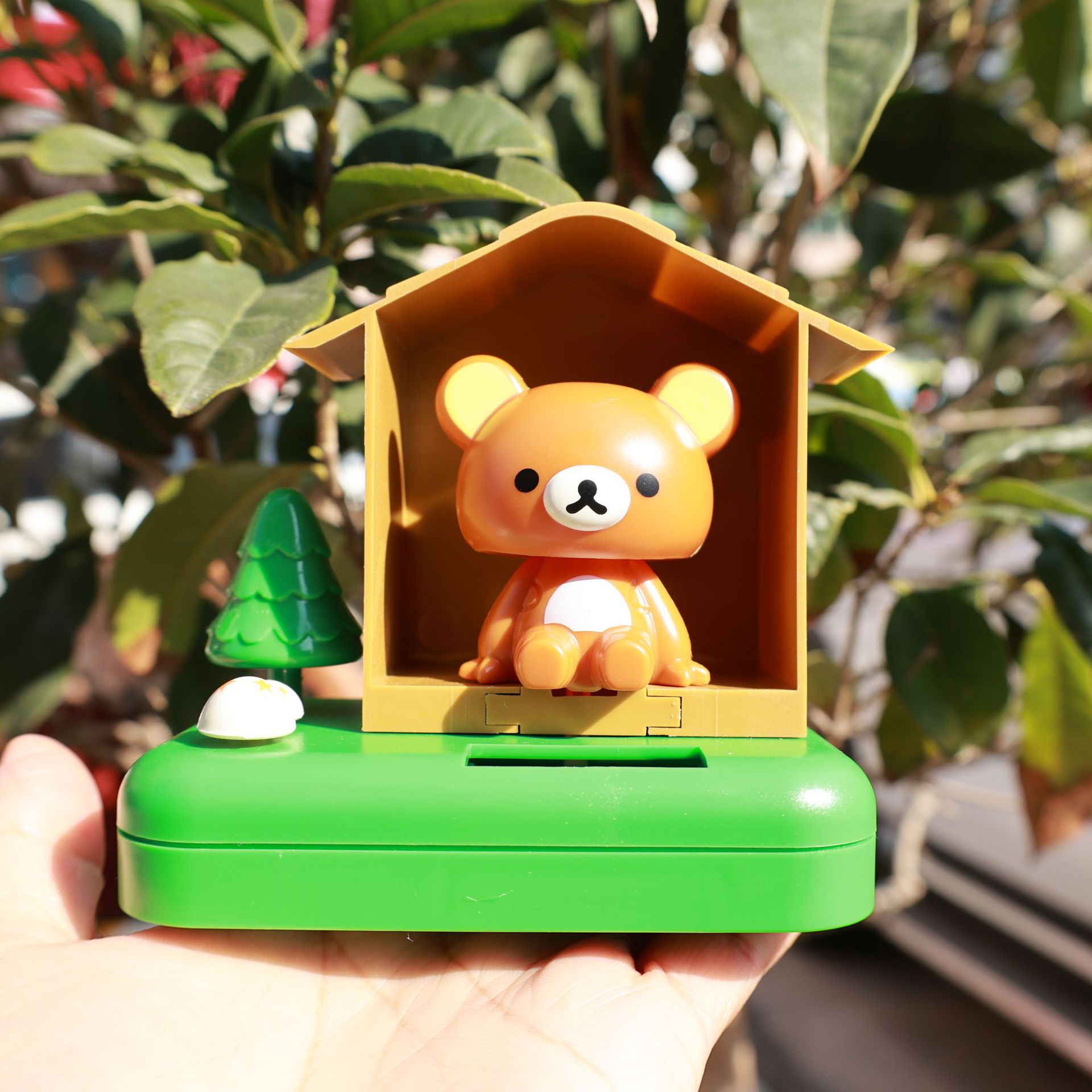 クロスボーダーの太陽エネルギーの自動車の装飾の置物の木の家のパンダは車の装飾の事務室を揺り動かして財の創意用品を募集します。