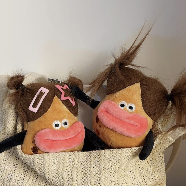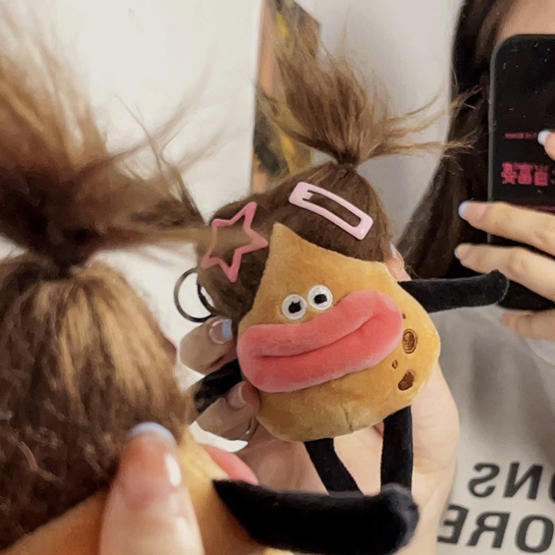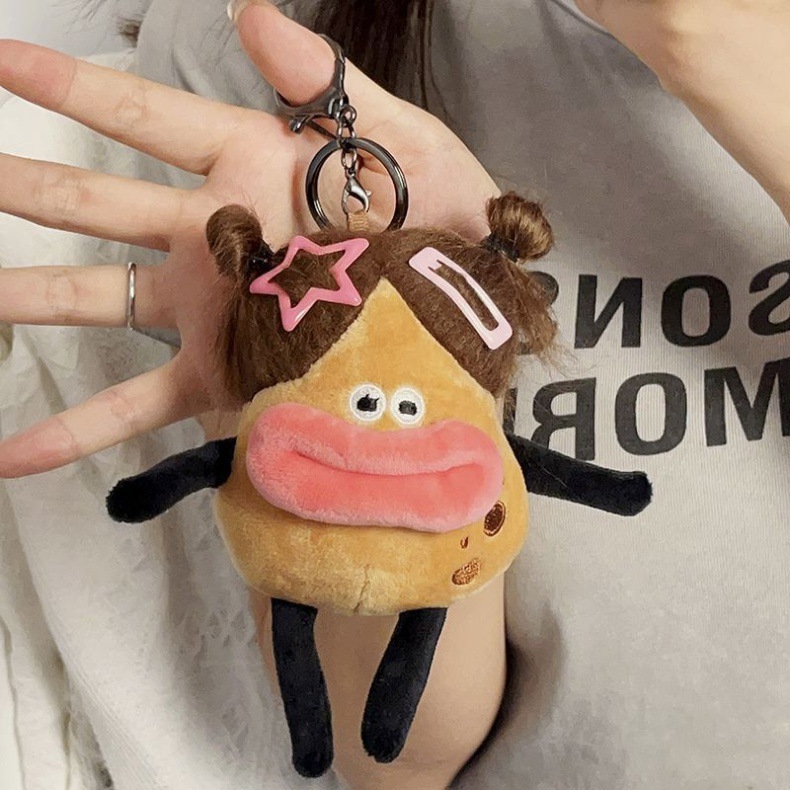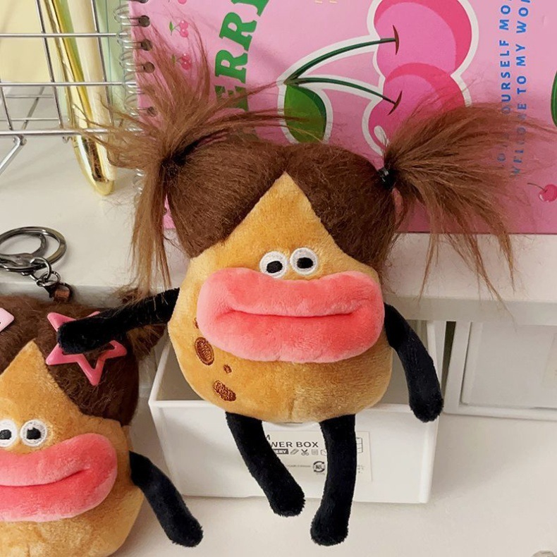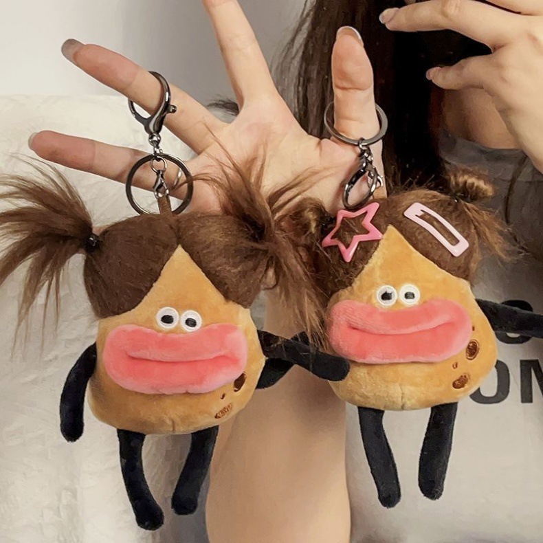 爆毛ポテトくん人形 大きな口の爆毛人形ペンダント 漫画風でかわいいキーホルダー カップル向けの面白いバッグ飾り