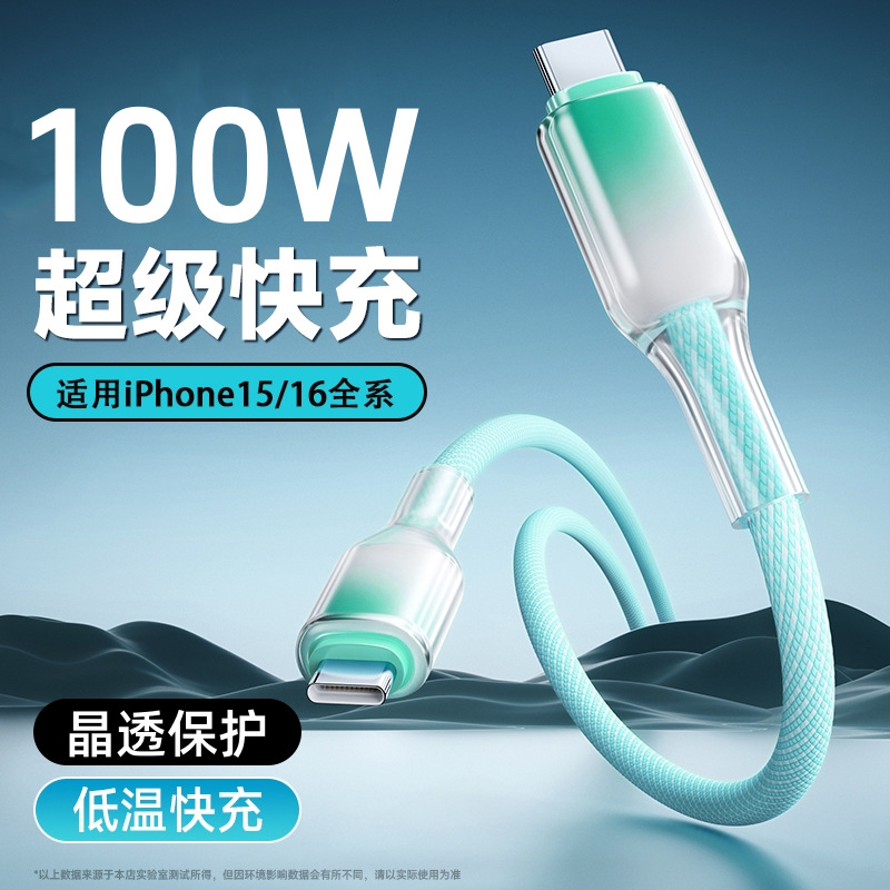 100W急速充電ダブルヘッドType-cデータケーブルはアップル16華為安卓車載充電線氷晶グラデーションを適用する