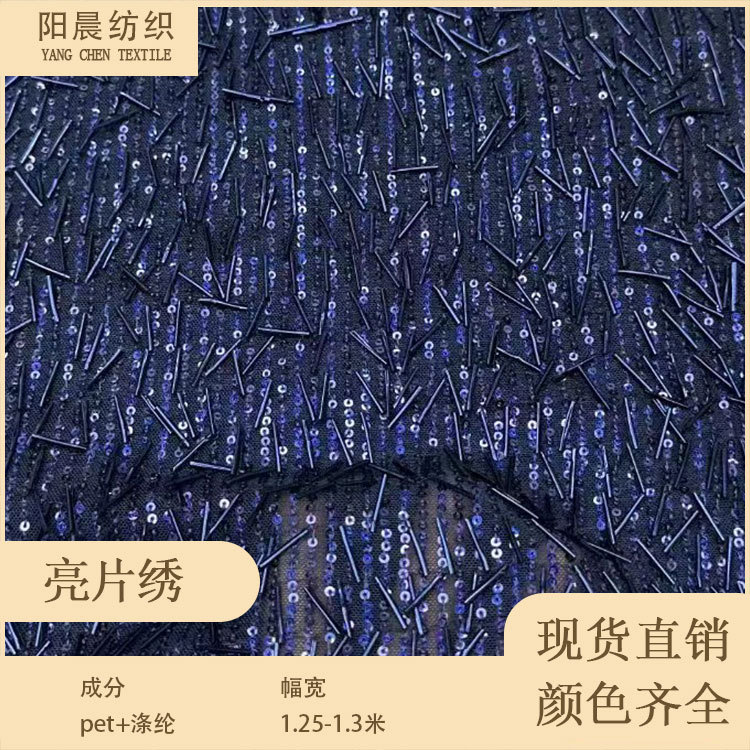3mmスパンコール+パイプスパンコール刺繍生地、衣類、ドレス、バッグ、靴材、舞台衣装、スパンコール生地、刺繍