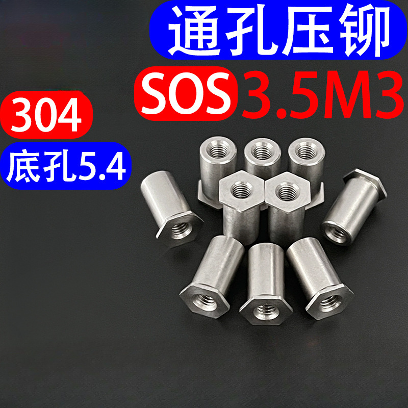 304ステンレススルー穴カシメスタッドカシメスタッドsos soos m3x3 ~ m3x25外径5.4
