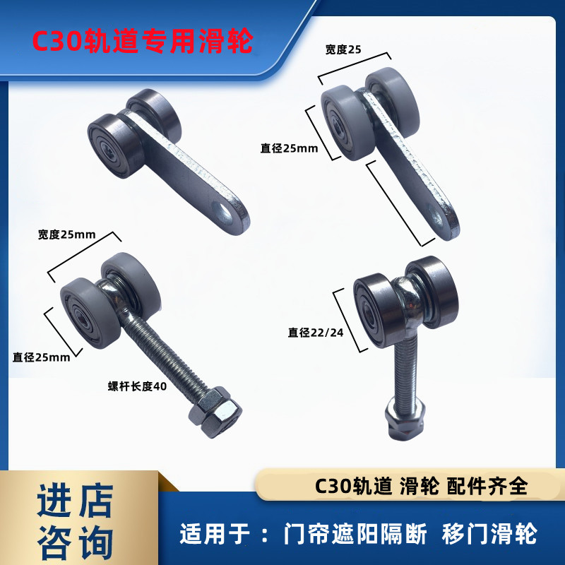 C30 トラック引き戸プーリー、引き戸吊り下げホイール、簡易ドア、温室ドア、ダブルベアリングプーリー、耐荷重100KG