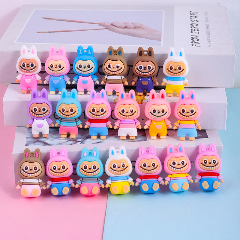 新しいラブブの人気の子供の漫画の人形かわいいミニ生産ソフトプラスチックアクセサリー卸売ペンカバー鉛筆ヘッド
