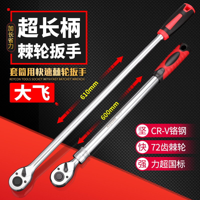 Keycon勁凱超長柄ラチェットレンチ1/2大飛伸縮ラチェットソケットレンチ72歯クイックレンチ