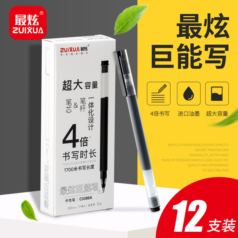 有力文房具大容量中性ペン4倍筆記学生試験用0.5黒子弾頭巨能書事務