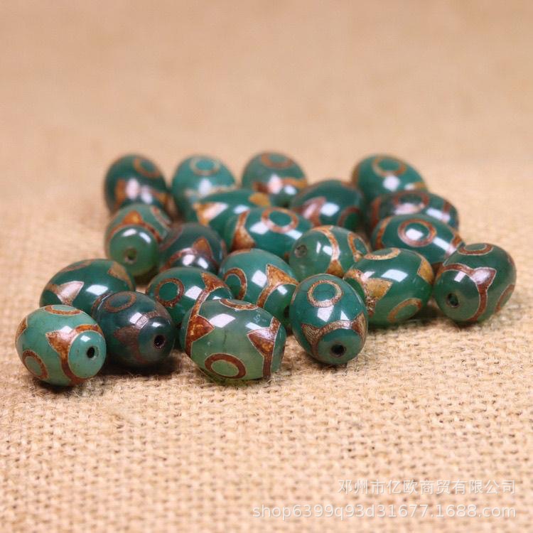 藏式绿玛瑙三眼天珠桶珠顶腰珠隔珠饰品配件文玩串珠diy手串批发