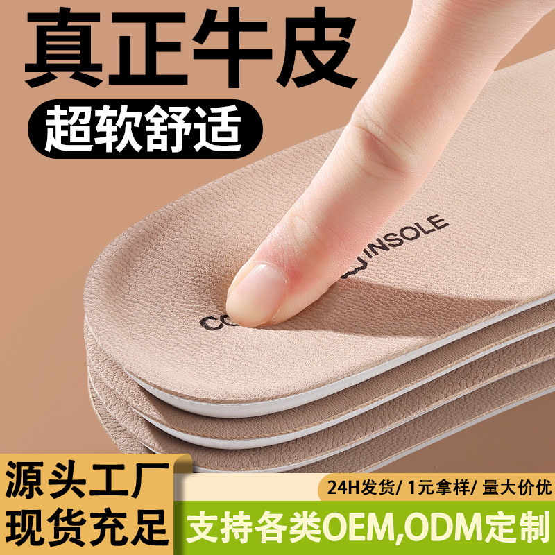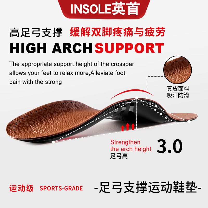 头层牛皮鞋垫足弓支撑男运动减震久站不累足弓垫真皮防臭批发源头